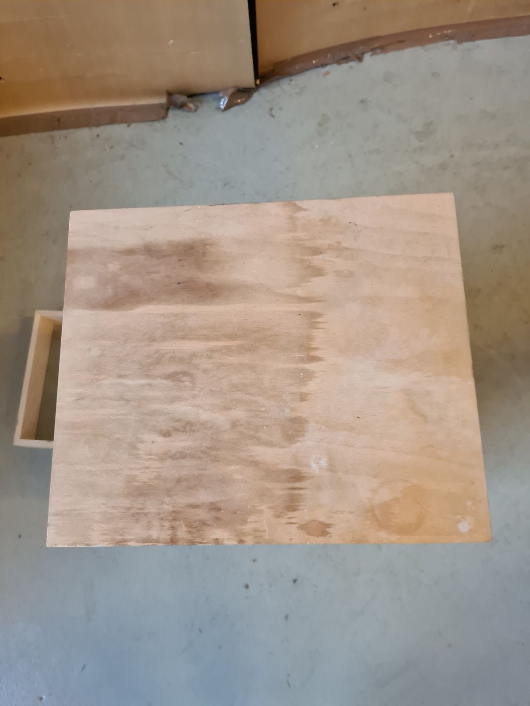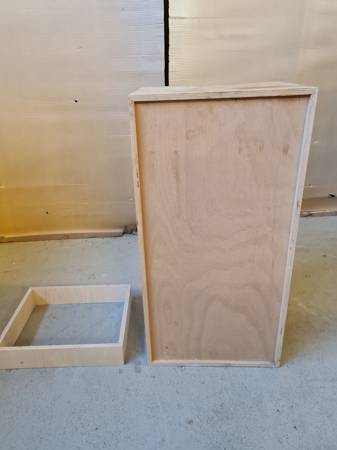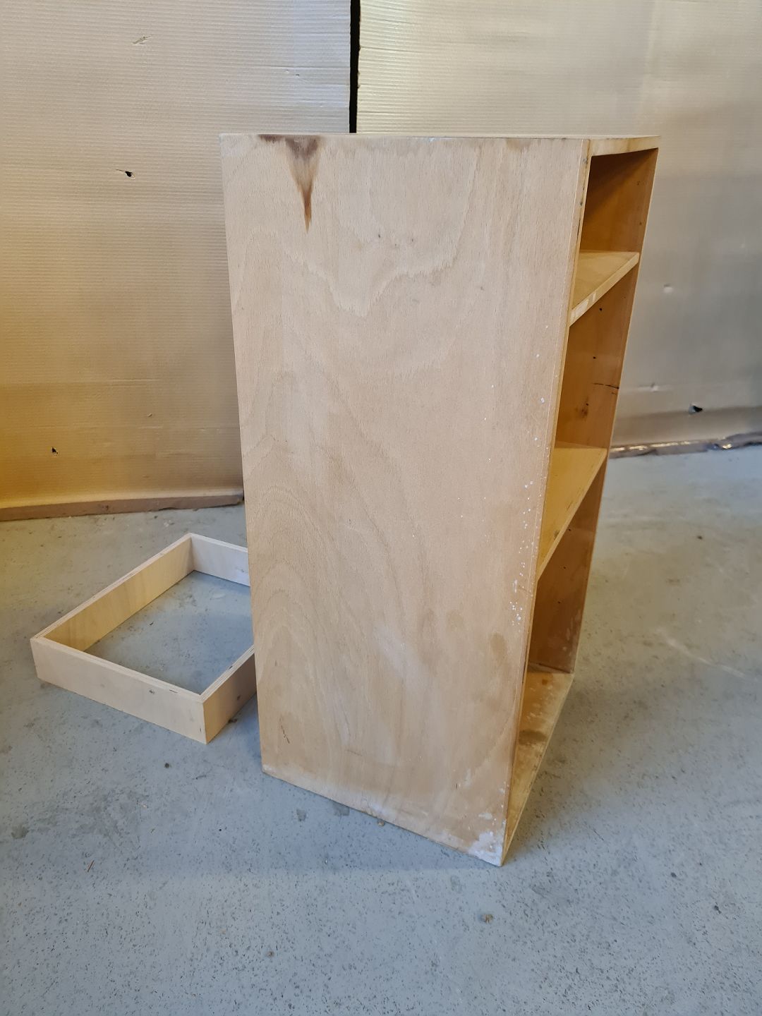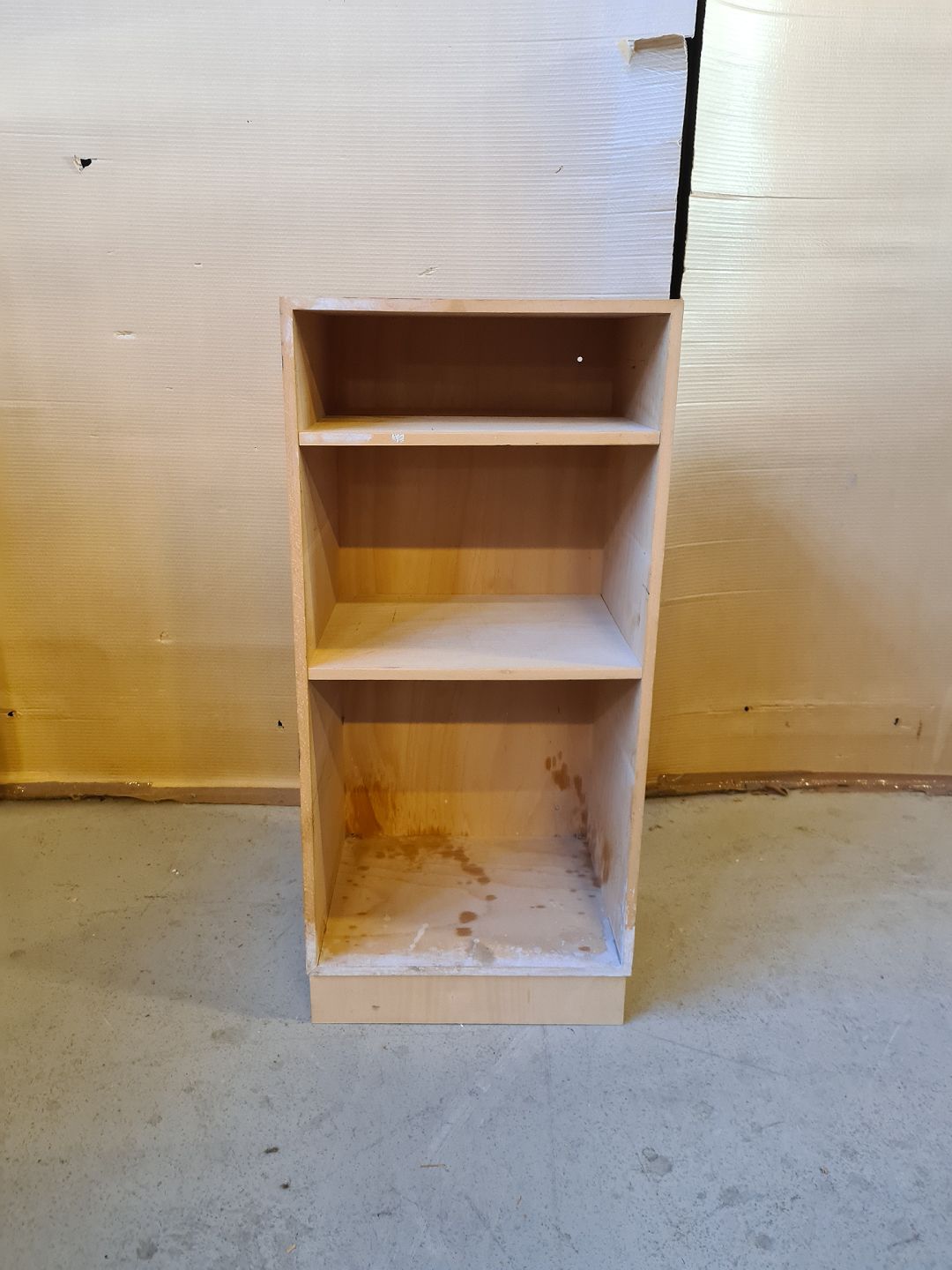 Reol i krydsfiner med sokkel, fra 2000erne.