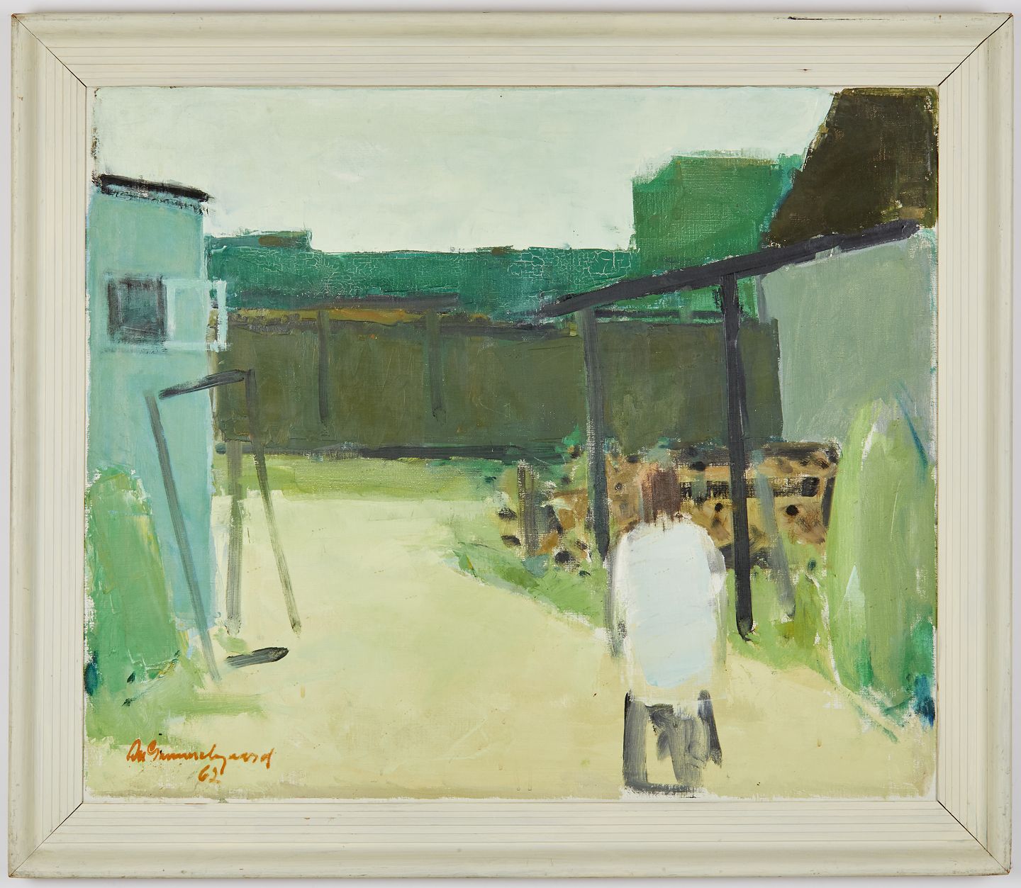 Mounted I golden wooden frame, Signed