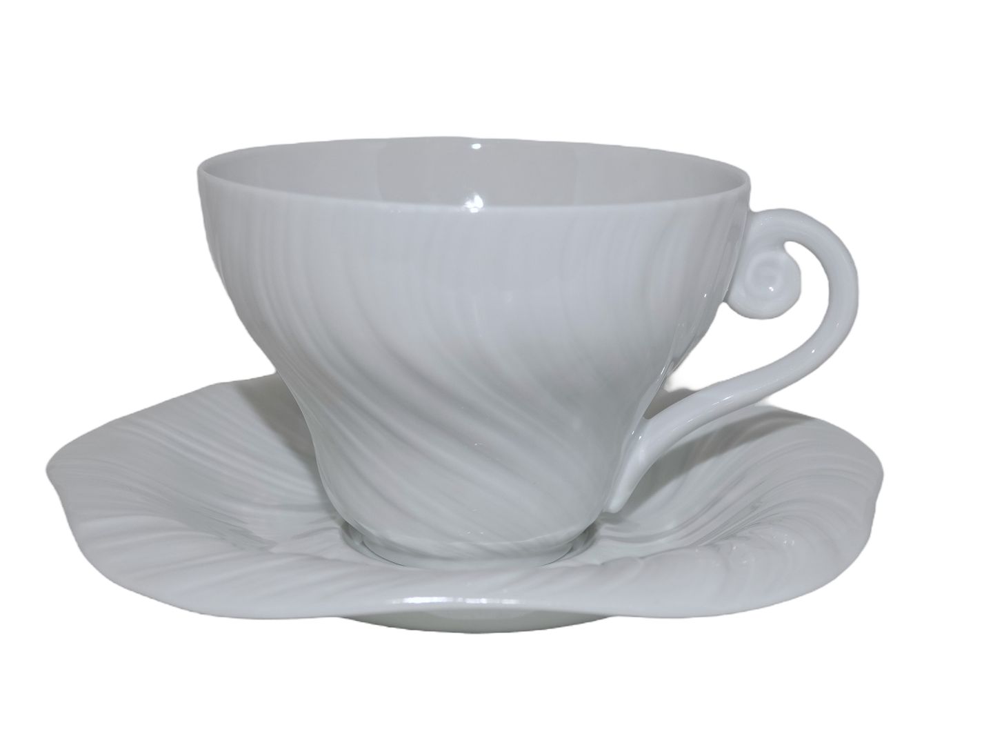 Royal Copenhagen Hvid Konkylie, stor kaffekop med tilhørende underkop.