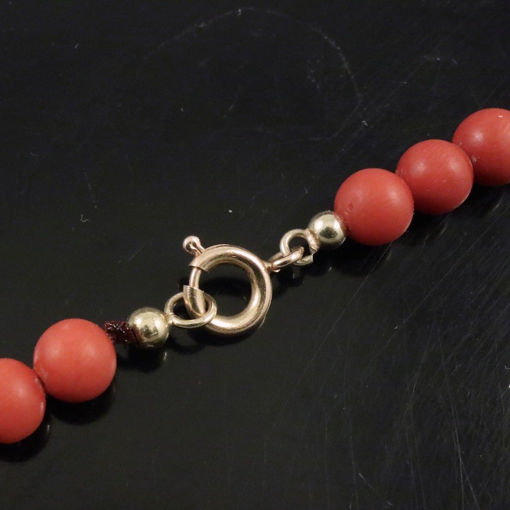 Koral halskæde med lås i 14k guld.