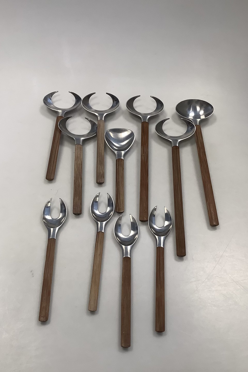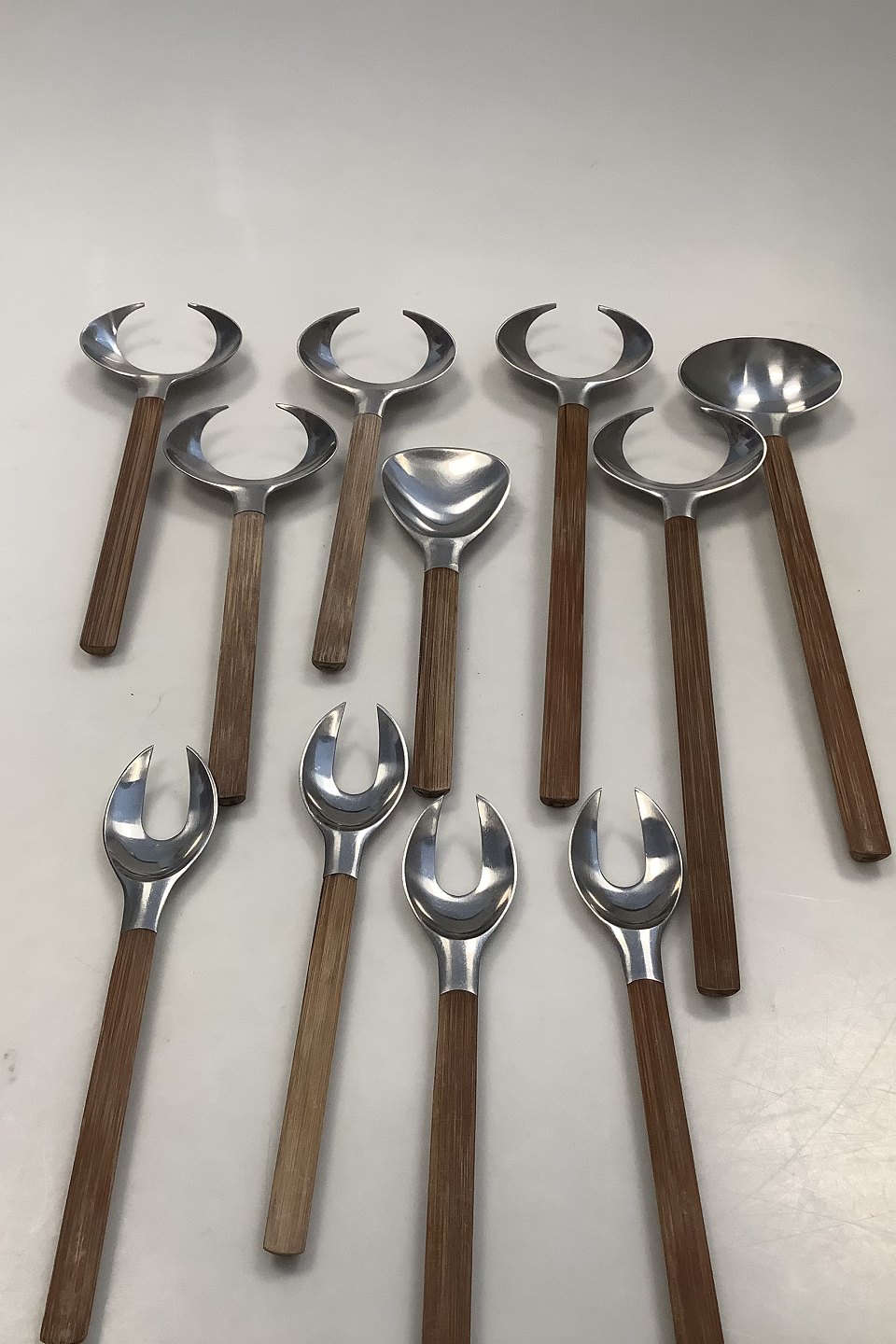 Jens Quistgaard IHQ Dansk Steel og Bamboo Flatware set 106 pieces