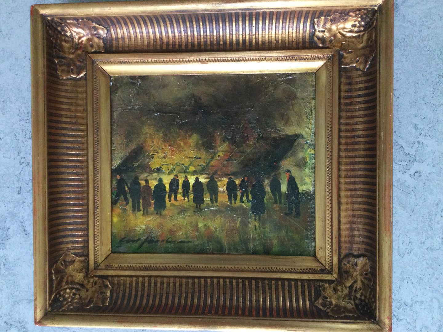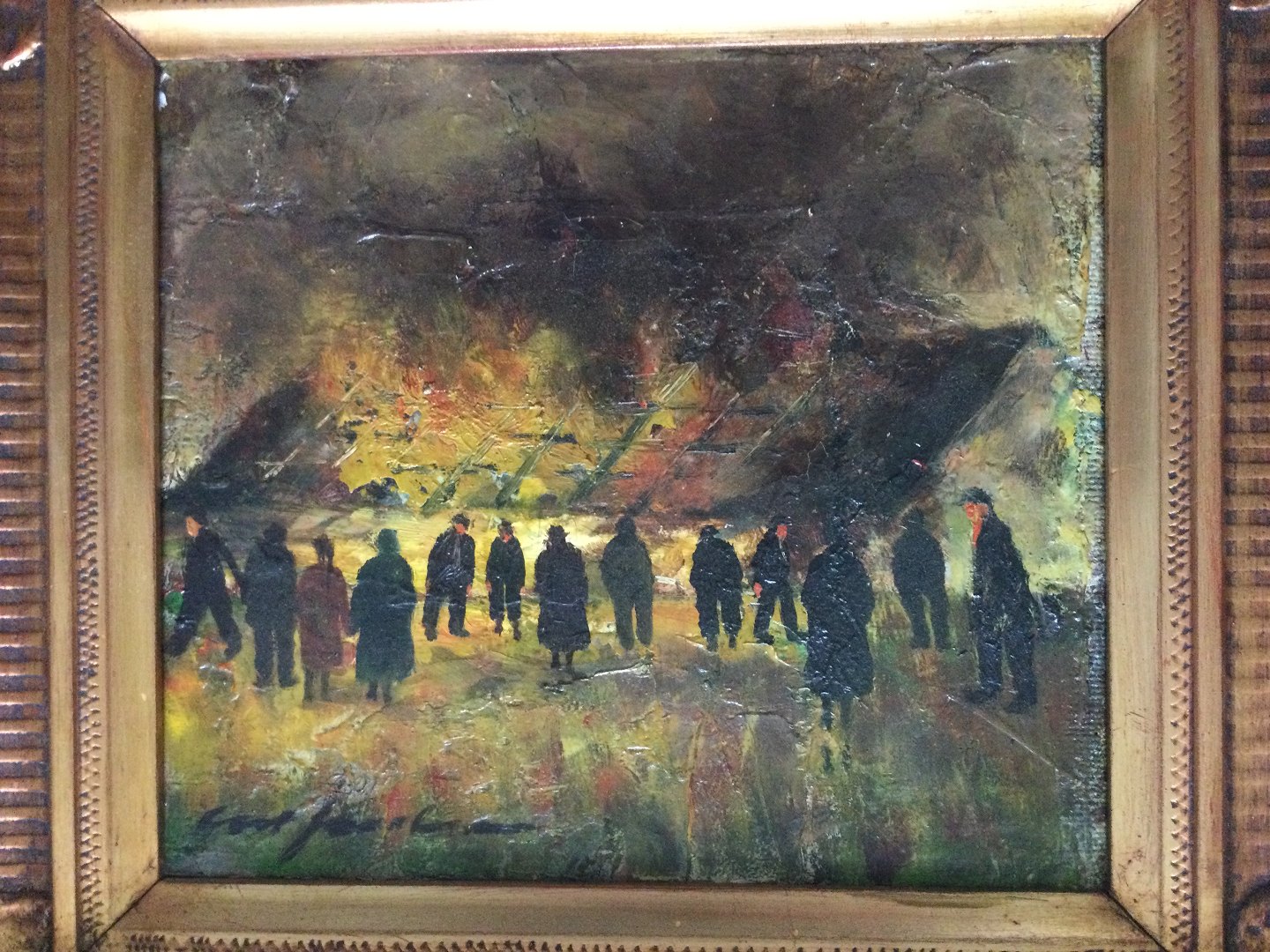 Maleri af Cort Jacobsen - Tilskuere til gårdbrand.