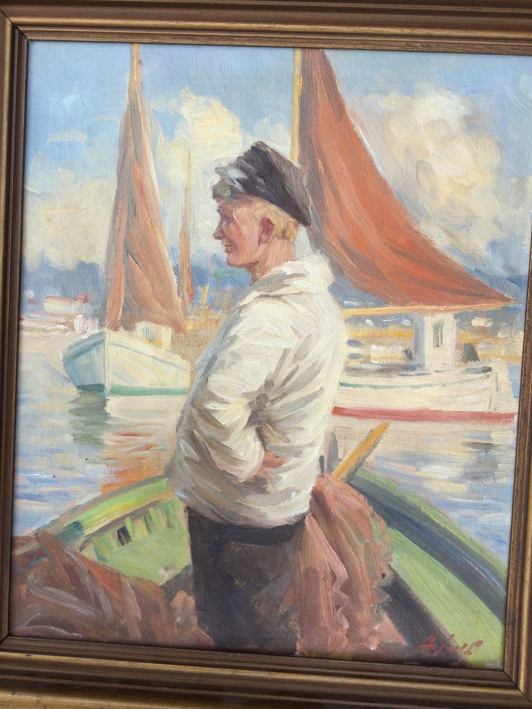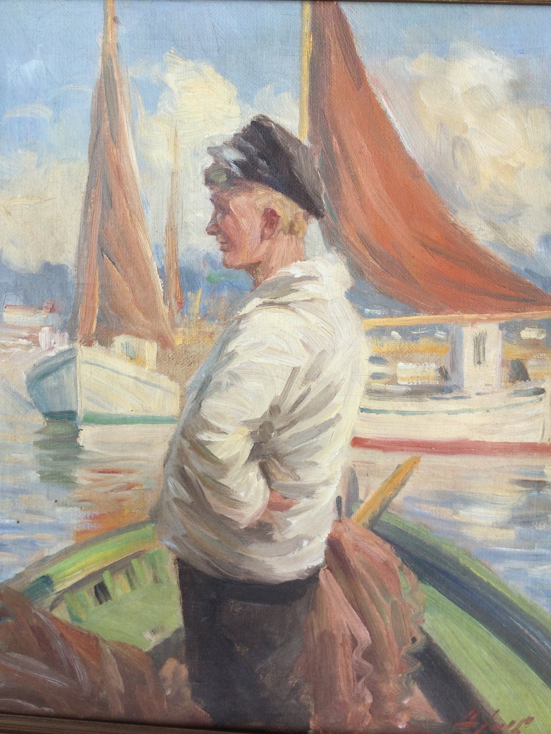 Maleri af Søren Christian Bjulf - Ung fisker i havnen.
