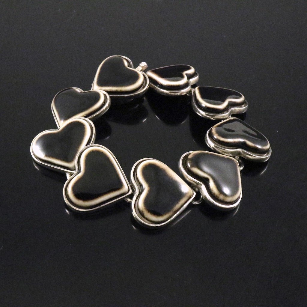 Royal Copenhagen / A. Michelsen. Porcelain and Sterling Silver Heart Bracelet.