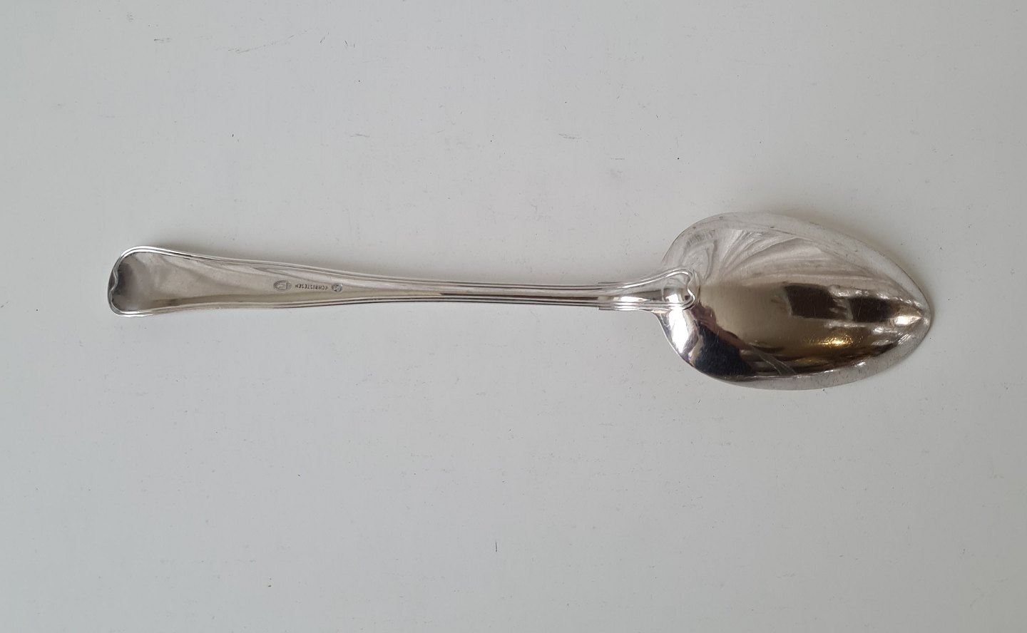 Old fluted large serving spoon in silver from 1876 V. Christensen