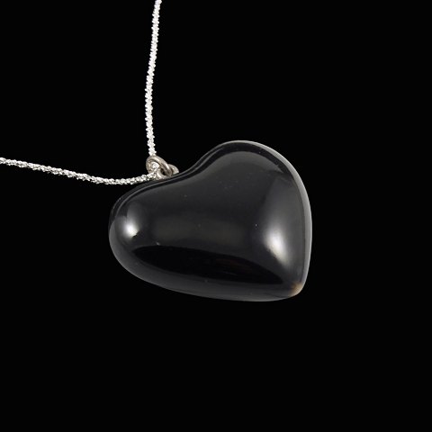 Royal Copenhagen. Hjertevedhæng i porcelæn med sterlingsølv.