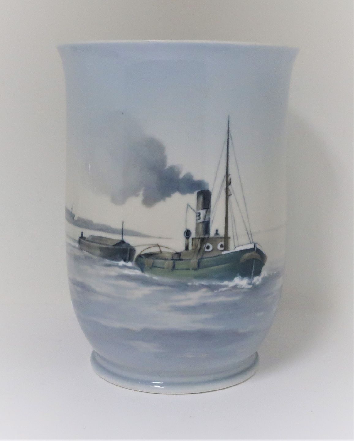 Bing & Grondahl. Porcelain vase with motif of a tugboat. Model 8715/460. Height 21 cm. (2. quality)