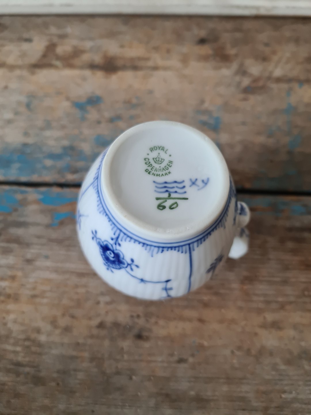 Royal Copenhagen Musselmalet riflet flødekande no. 60