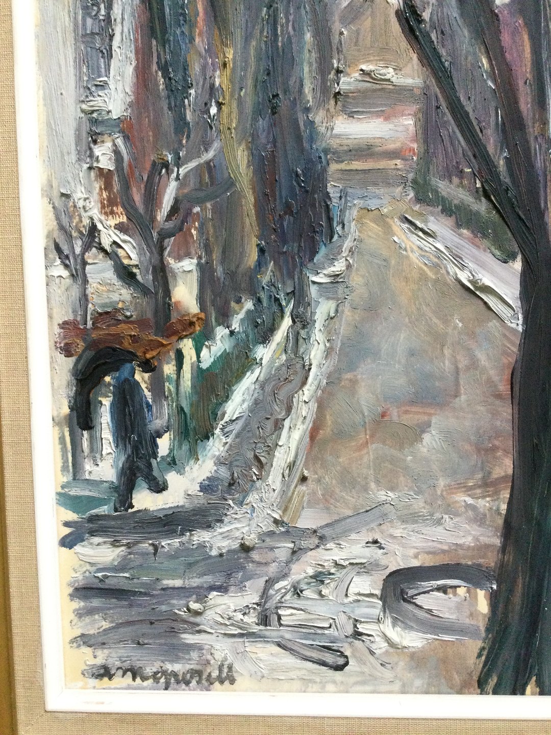 Maleri 1972 af Anne Margrethe Grosell - Vinterlandskab.