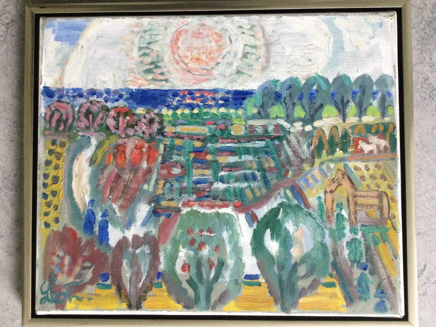 Maleri af Leo Thellefsen - Marklandskab Påsken 1980.