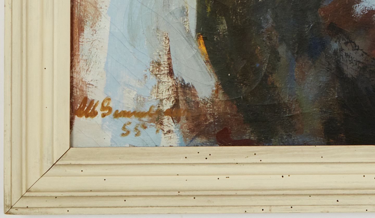 Oil painting, Signed and 55. Style, Expressionism Mounted in gold frame Dimensions: 88 x 74.5 cm. (78 x 64 cm). Provenance: All works were acquired from the family