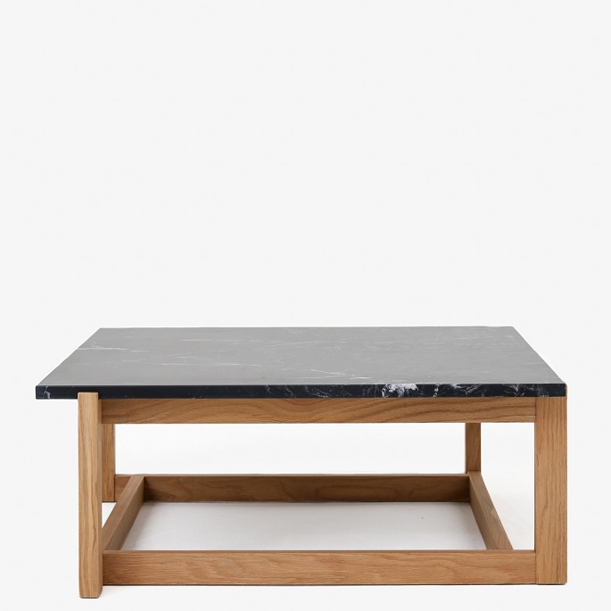 'Studio' kvadratisk sofabord i massiv, olieret stel af eg med sort marmor.