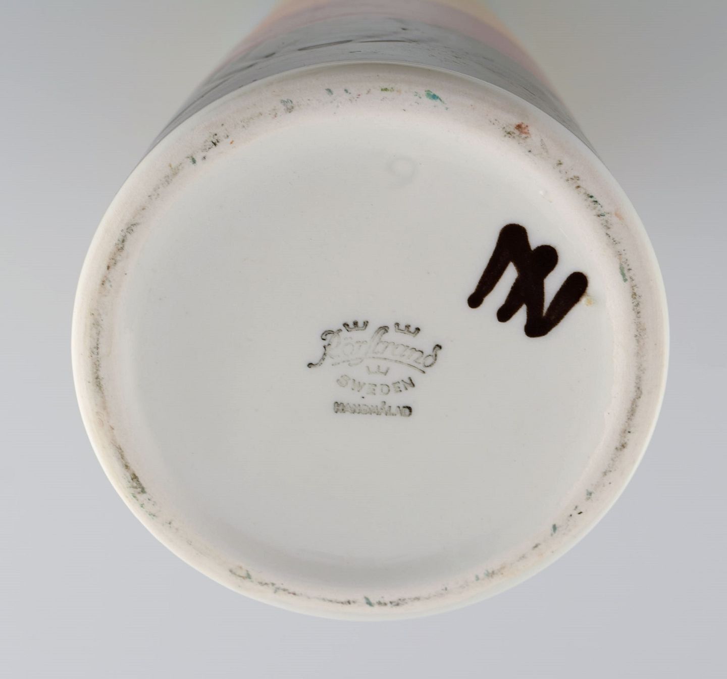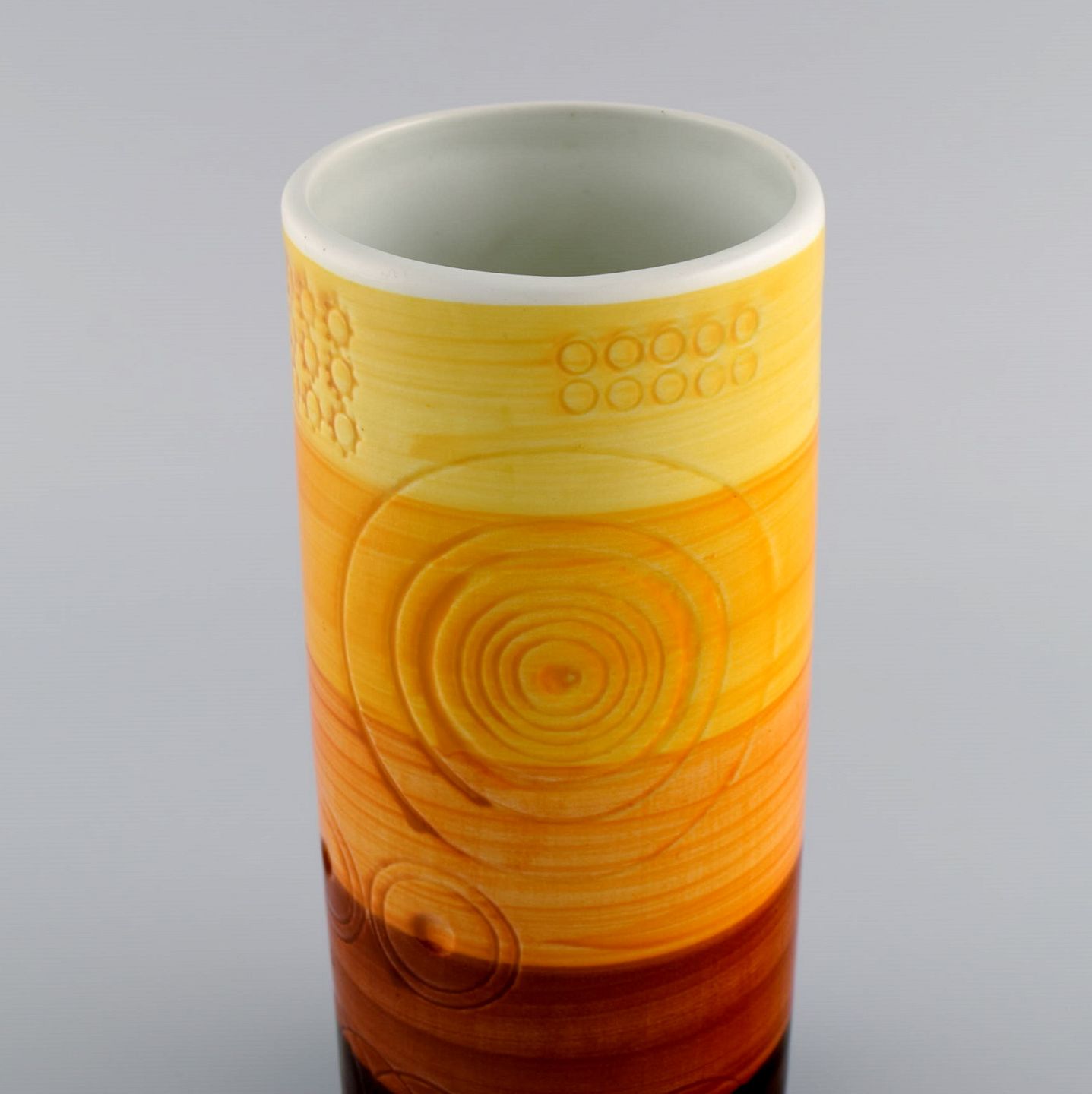 Olle Alberius for Rörstrand. Cylindrisk Sarek vase i håndmalet og glaseret keramik med geometriske mønstre. Svensk design, 1960/70'erne.