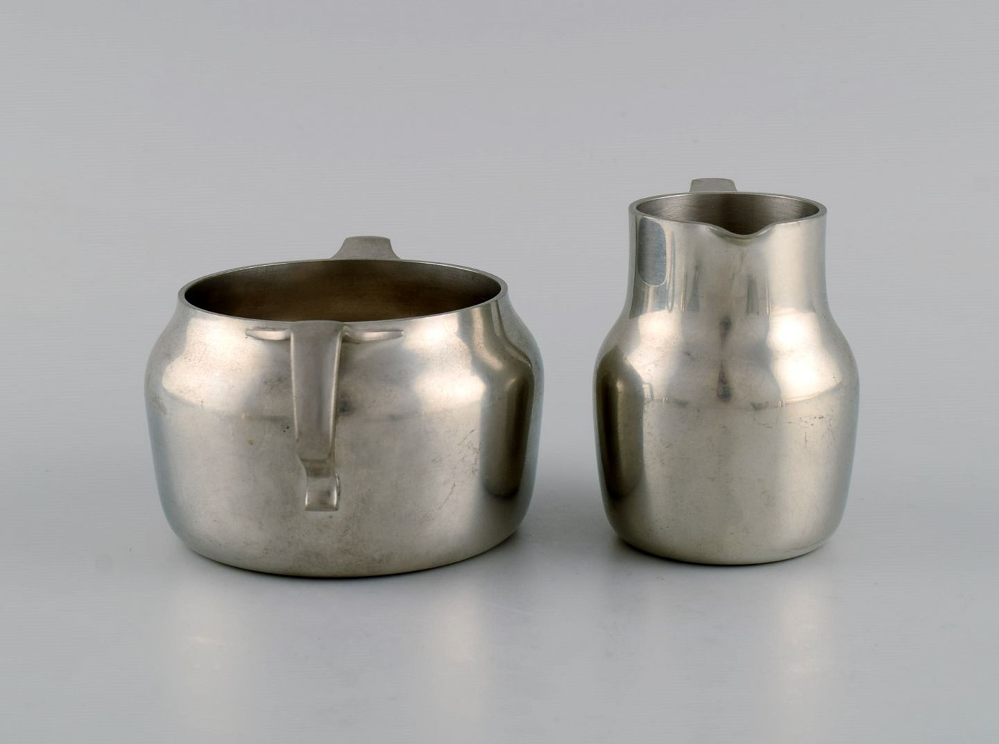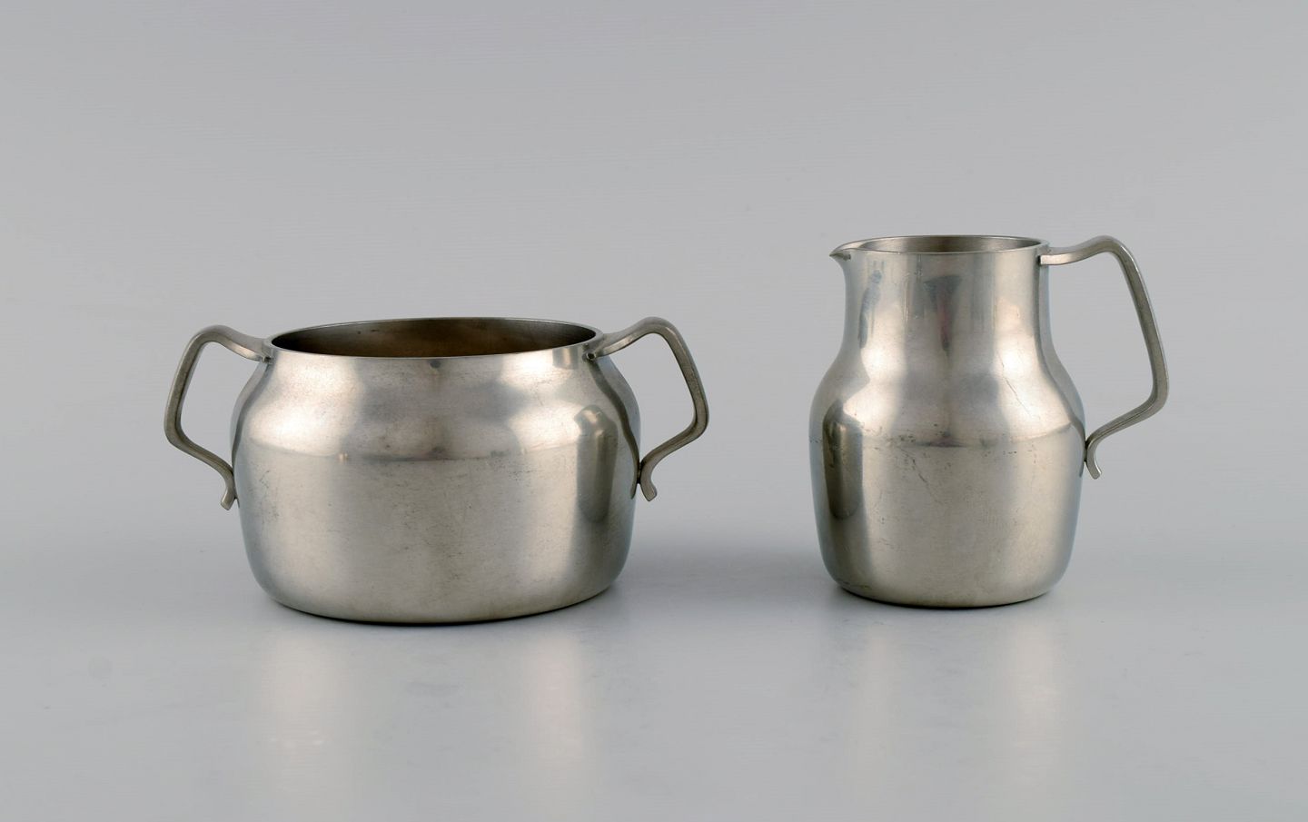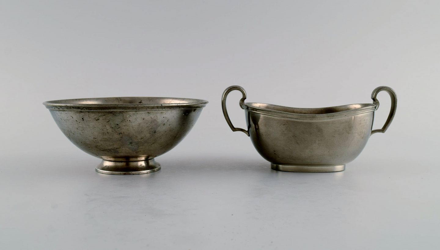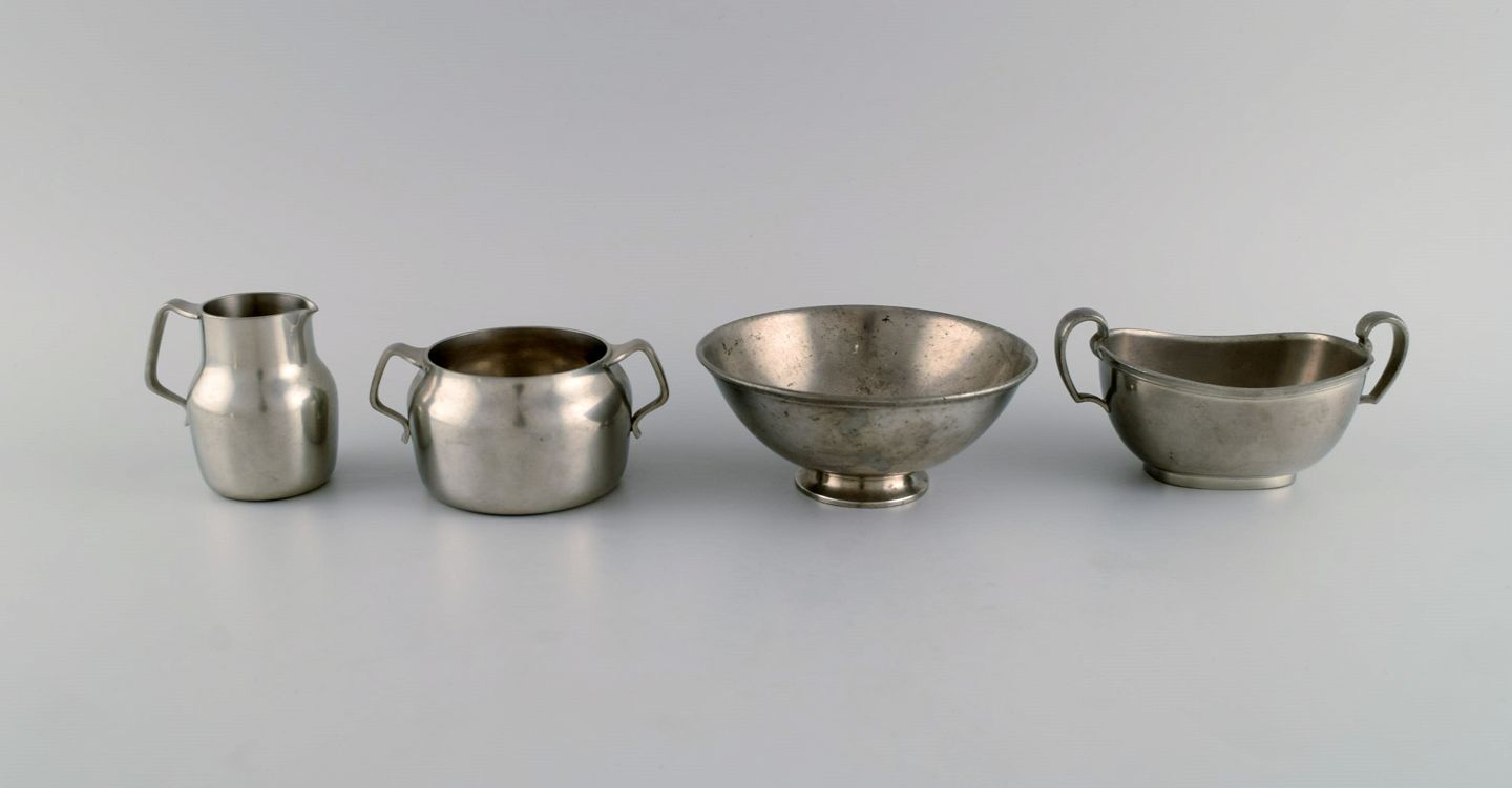 Just Andersen (1884-1943), Denmark. Art deco pewter creamer and three bowls. 1940s.