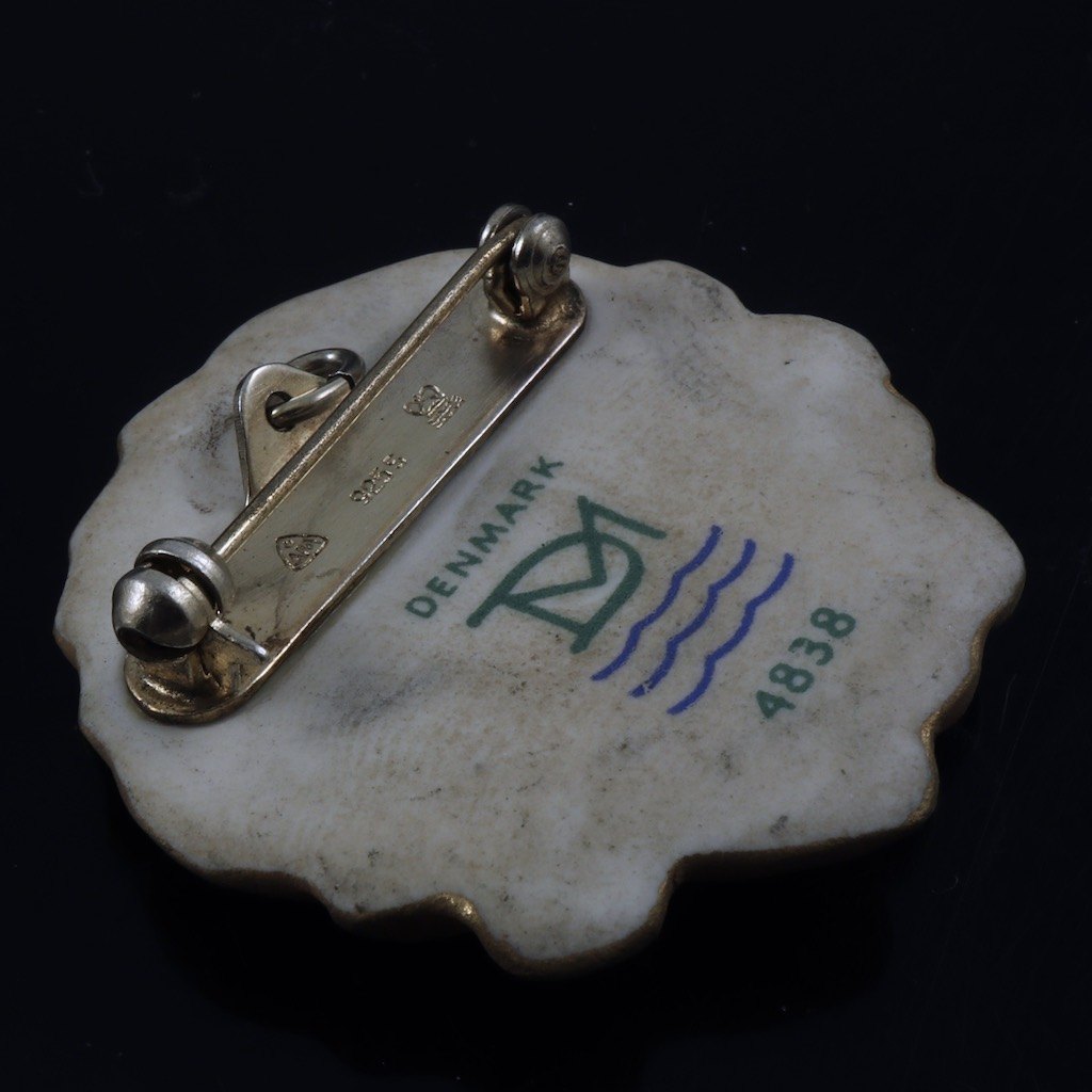 A. Michelsen / Royal Copenhagen. Broche/vedhæng i sterlingsølv og forgyldt porcelæn. #4838.