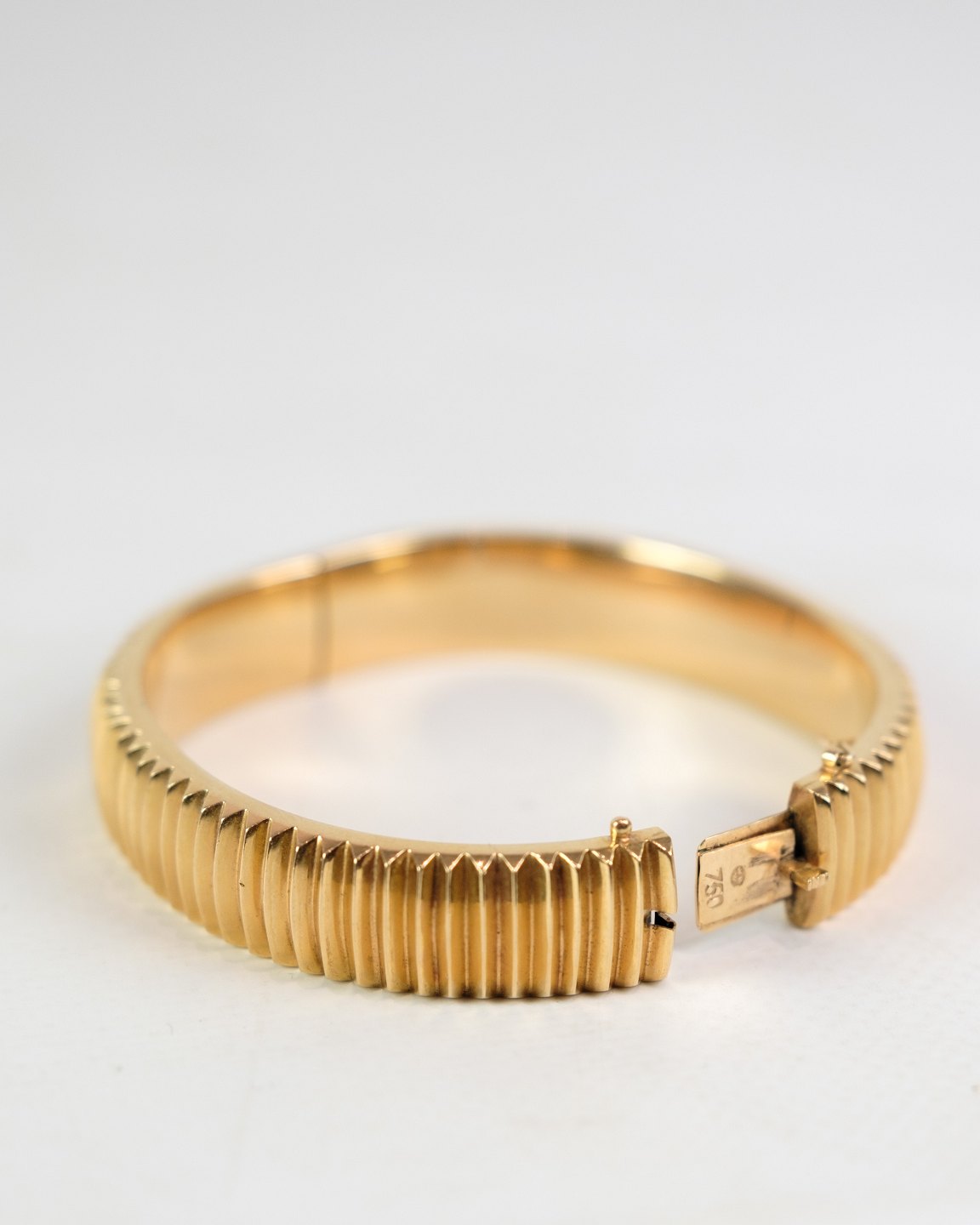Armring, rillede overflade, stemplet 750, 18 karat guld