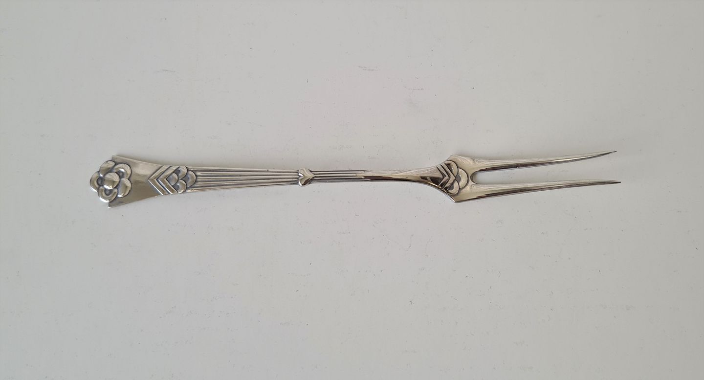 Københavns Porcelain nr. 8 pålægsgaffel i sølv fra 1918