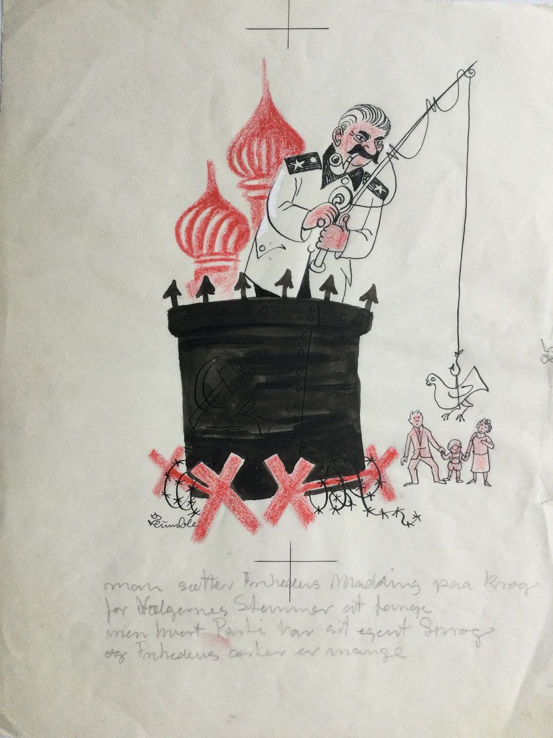 Satirisk tegning af Stalin lignende politiker på Stemmefiskeri.