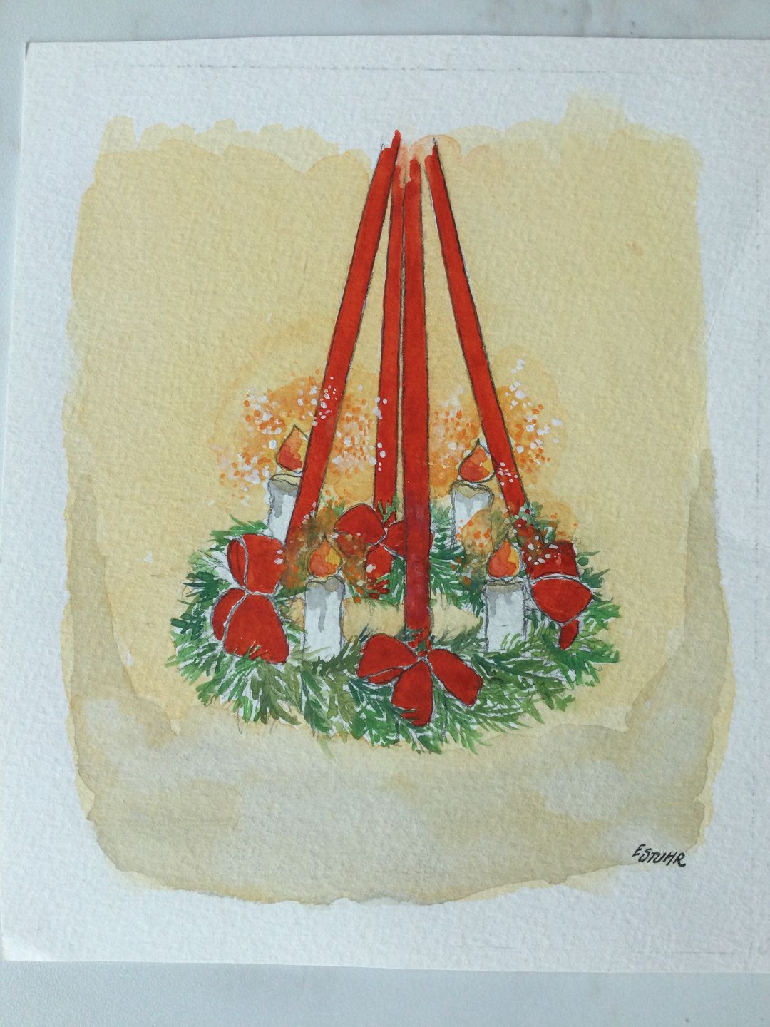 Akvarel af Erik Stuhr - Adventskrans.
