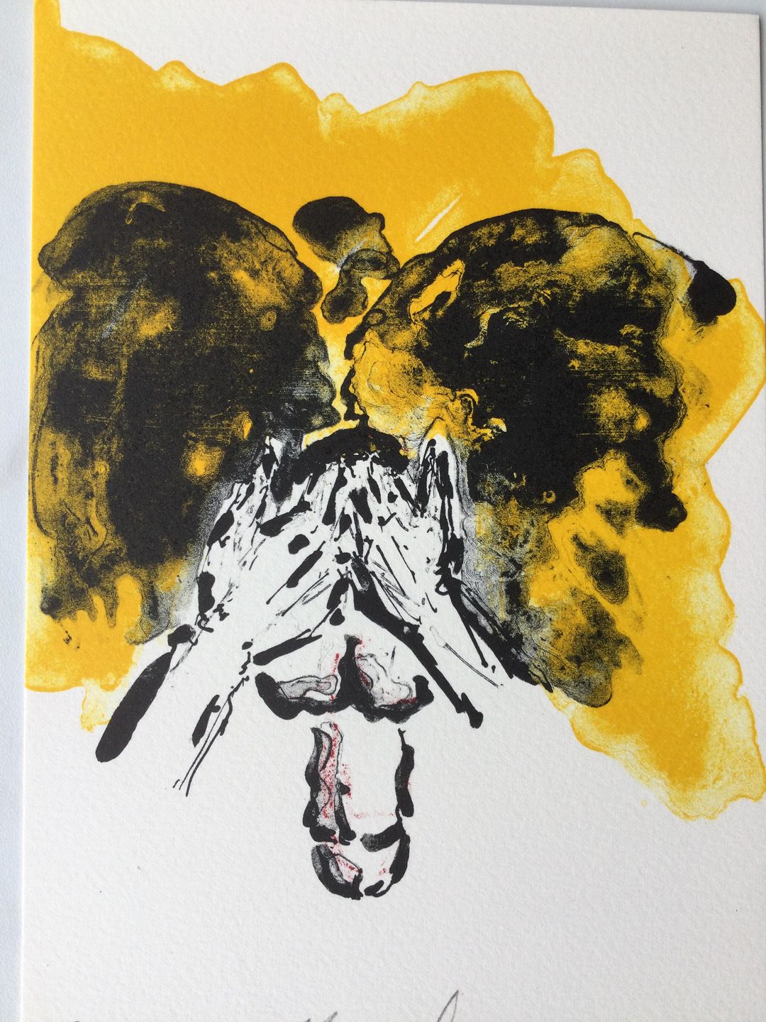 Farvelitografi af Frans Kannik 1998 - Erotisk komposition med fallos.