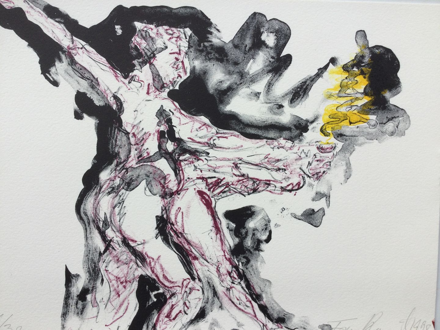 Farvelitografi af Frans Kannik 1998 - Erotisk komposition.