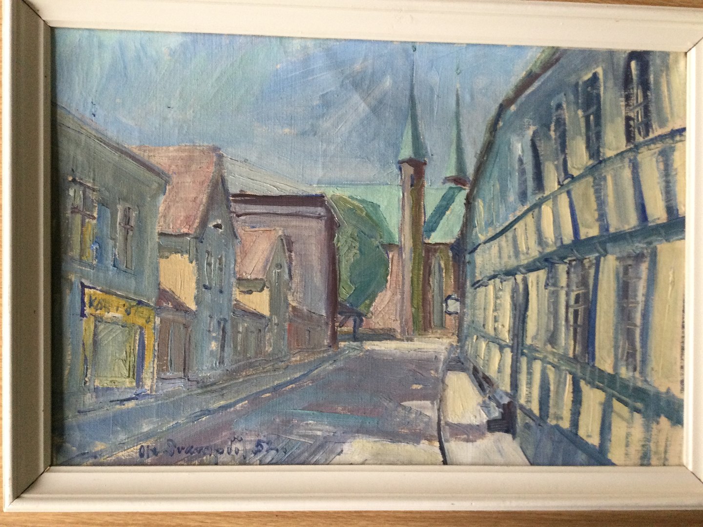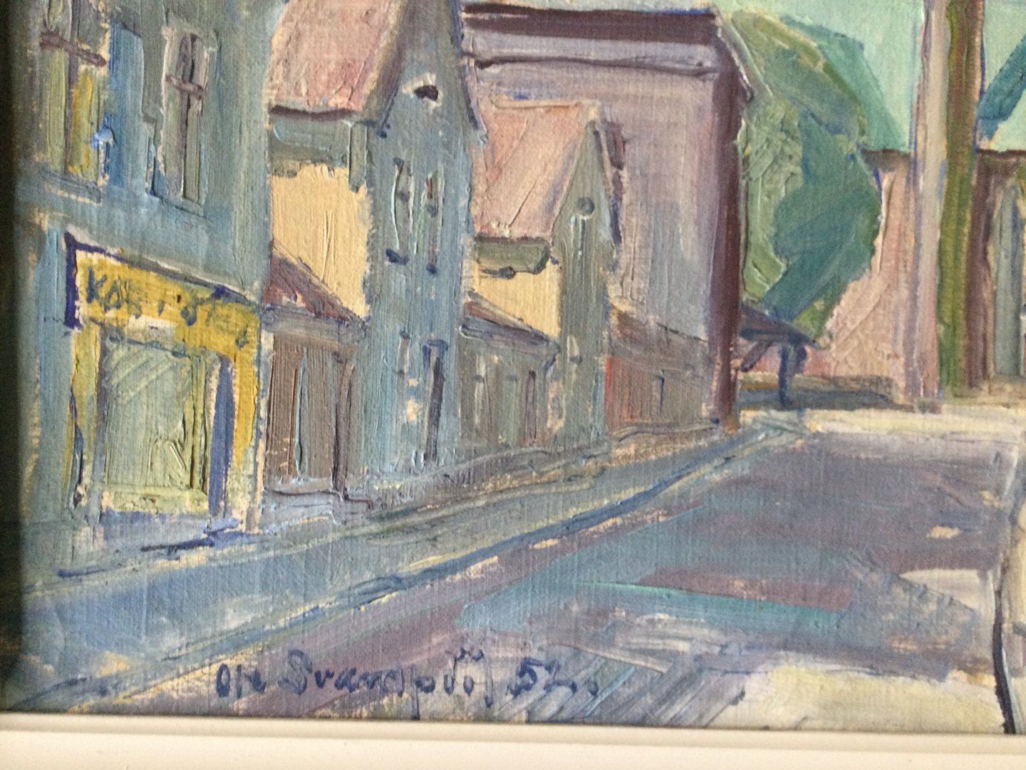 Maleri af Ole Sværdpiil - Gadeparti Aarhus 1952.
