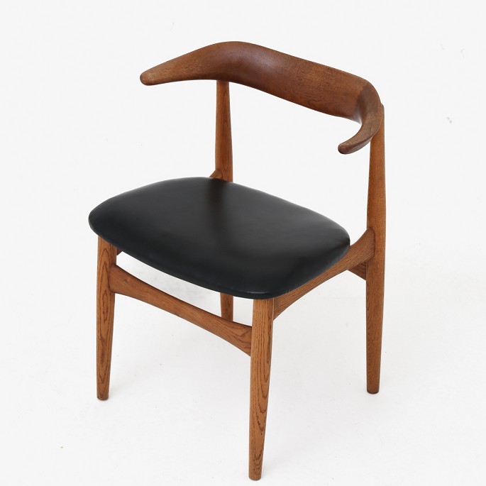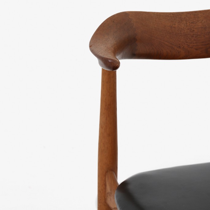 Armstol i teak og eg med sæde af sort læder.