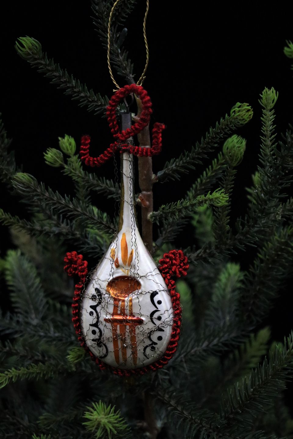 Gammel glas juleornament i form af mandolin fra omkring 30érne...