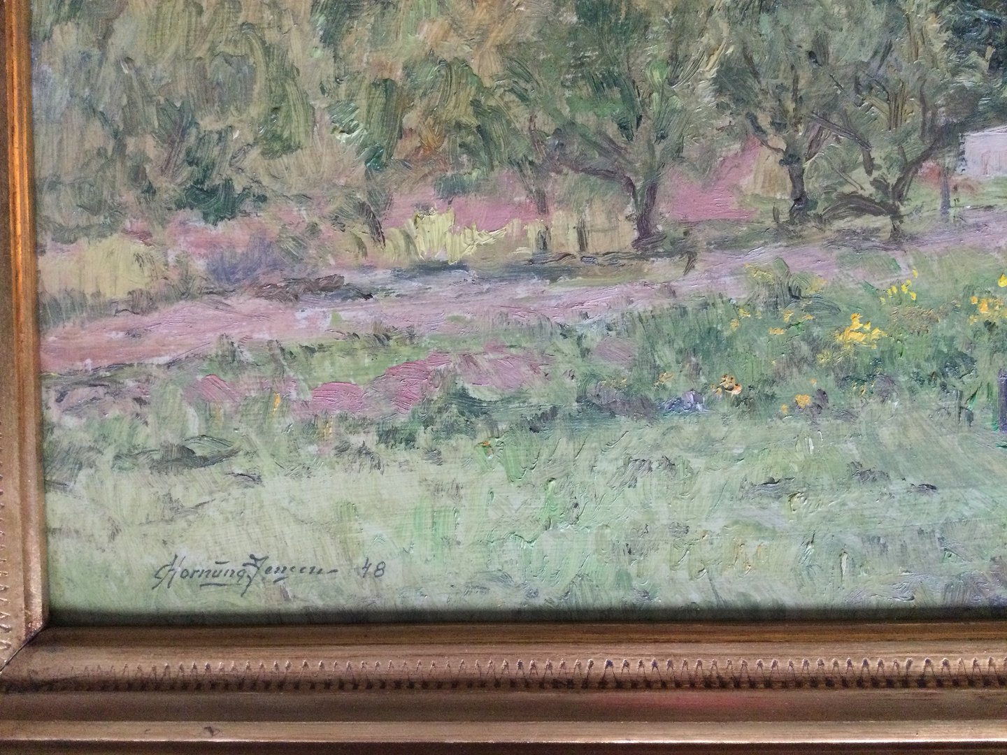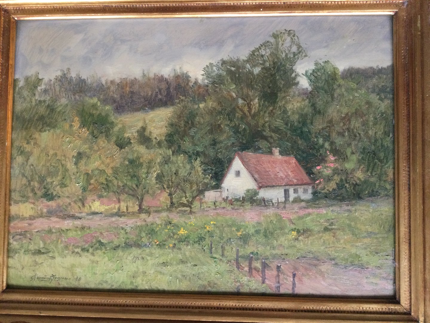 Maleri af Carlo Hornung-Jensen 1942 - Hus ved Hvide Klint, Frederiksværk 1948.