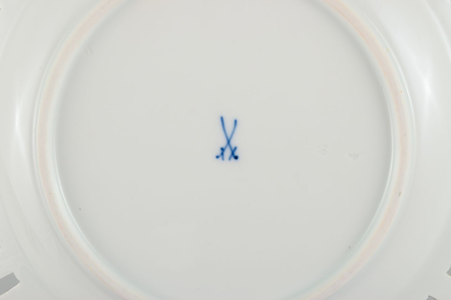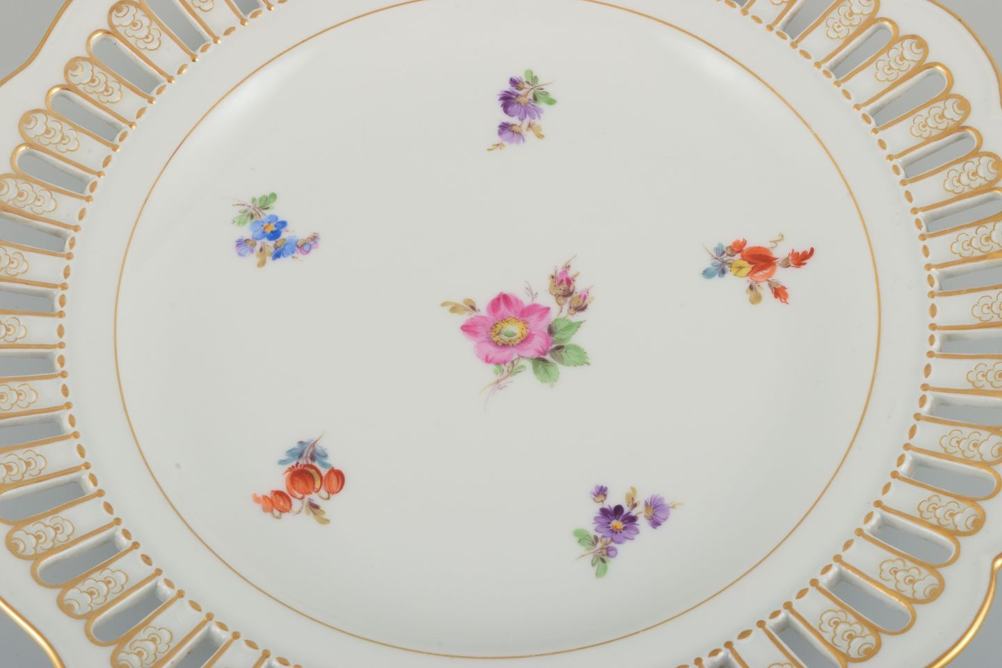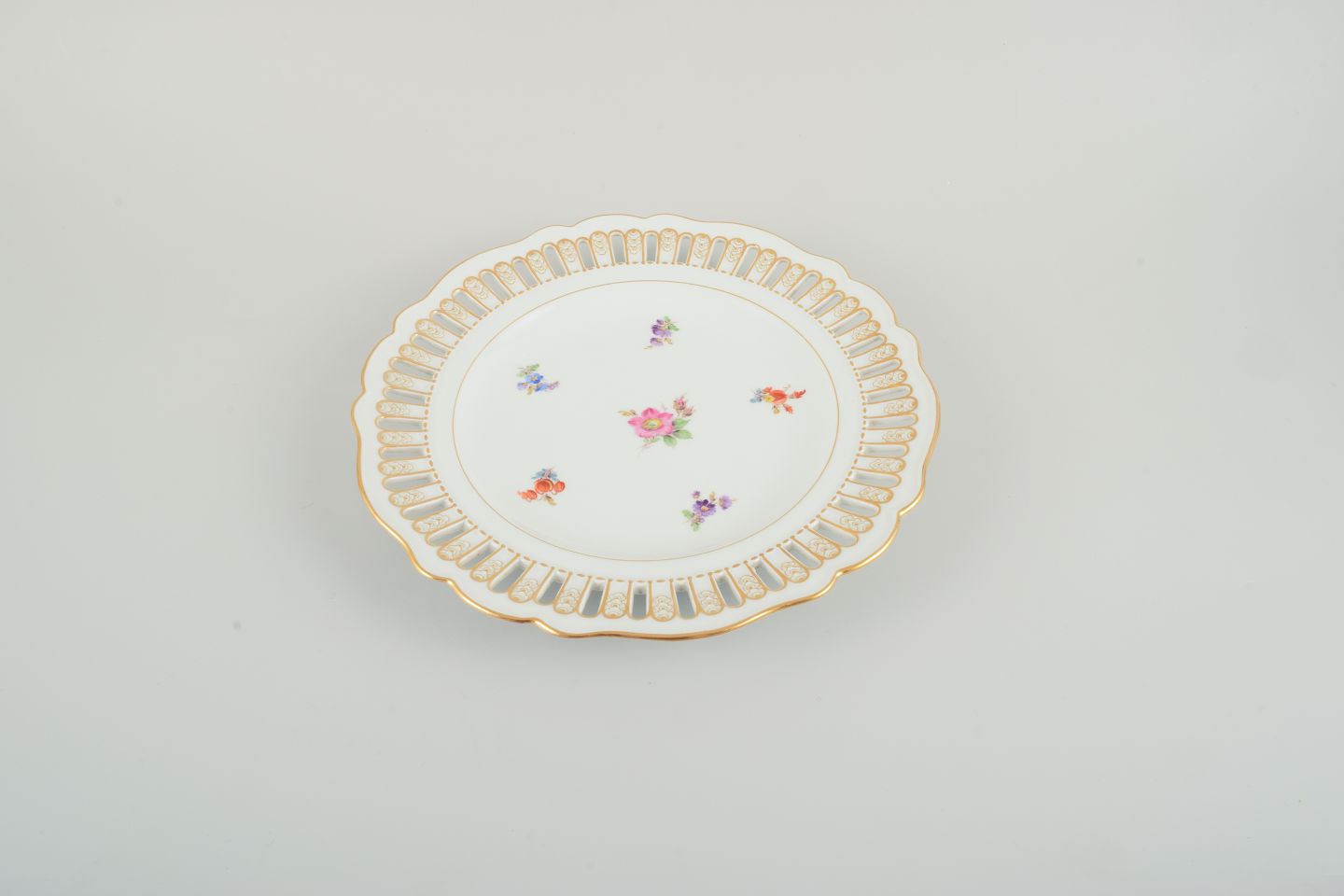 Antique Meissen openwork plate in hand-painted porcelain with flowers and gold decoration. Late 19th century.