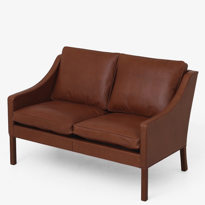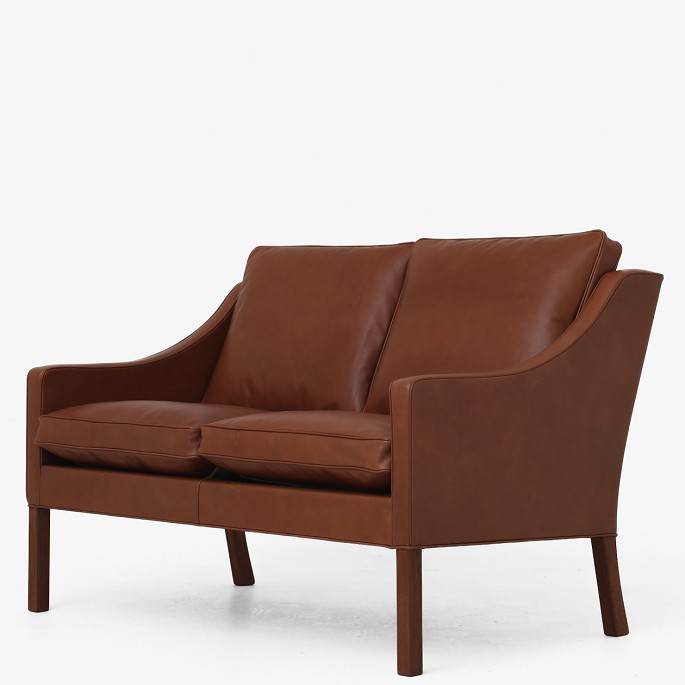 BM 2208 - Nybetrukket 2 pers. sofa i brunt 'Old America' anilinlæder. KLASSIK tilbyder sofaen i tekstil eller læder efter eget valg. Kontakt os venligst for mere information.