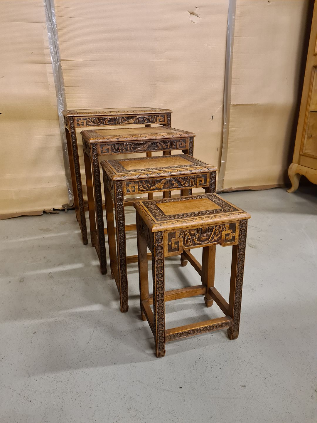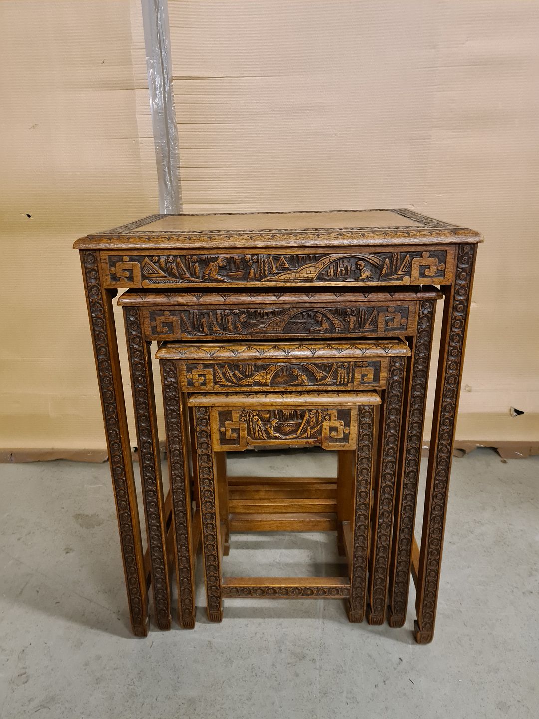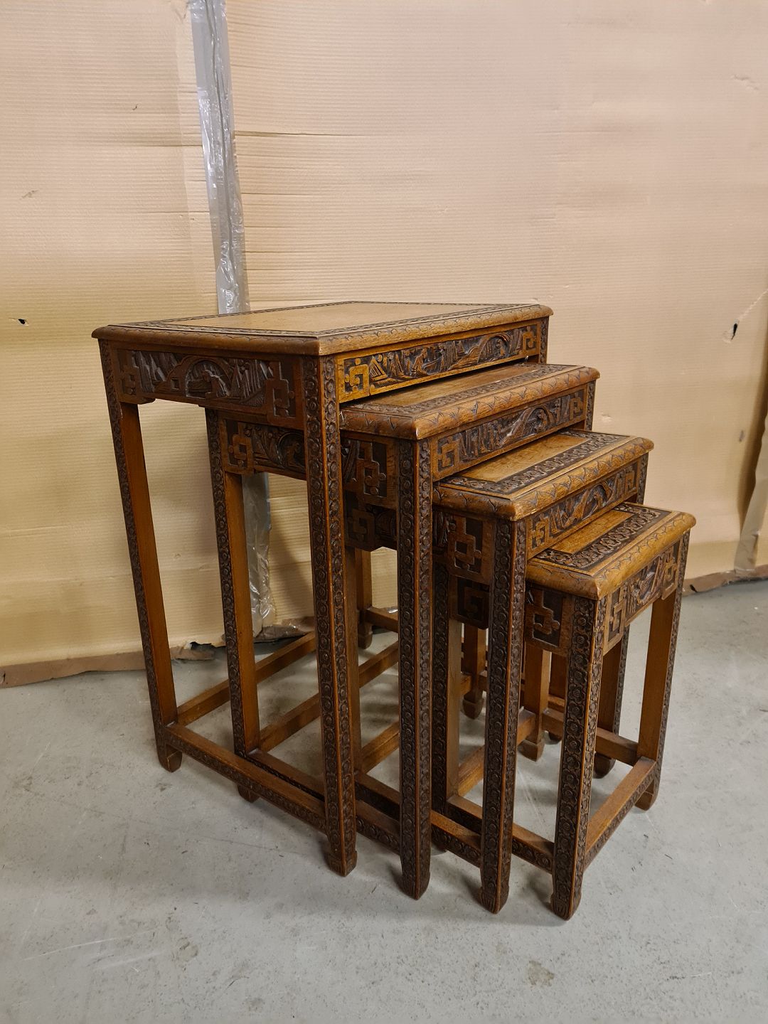 4 Indskudsborde i massivt mahogni fra 1970erne.