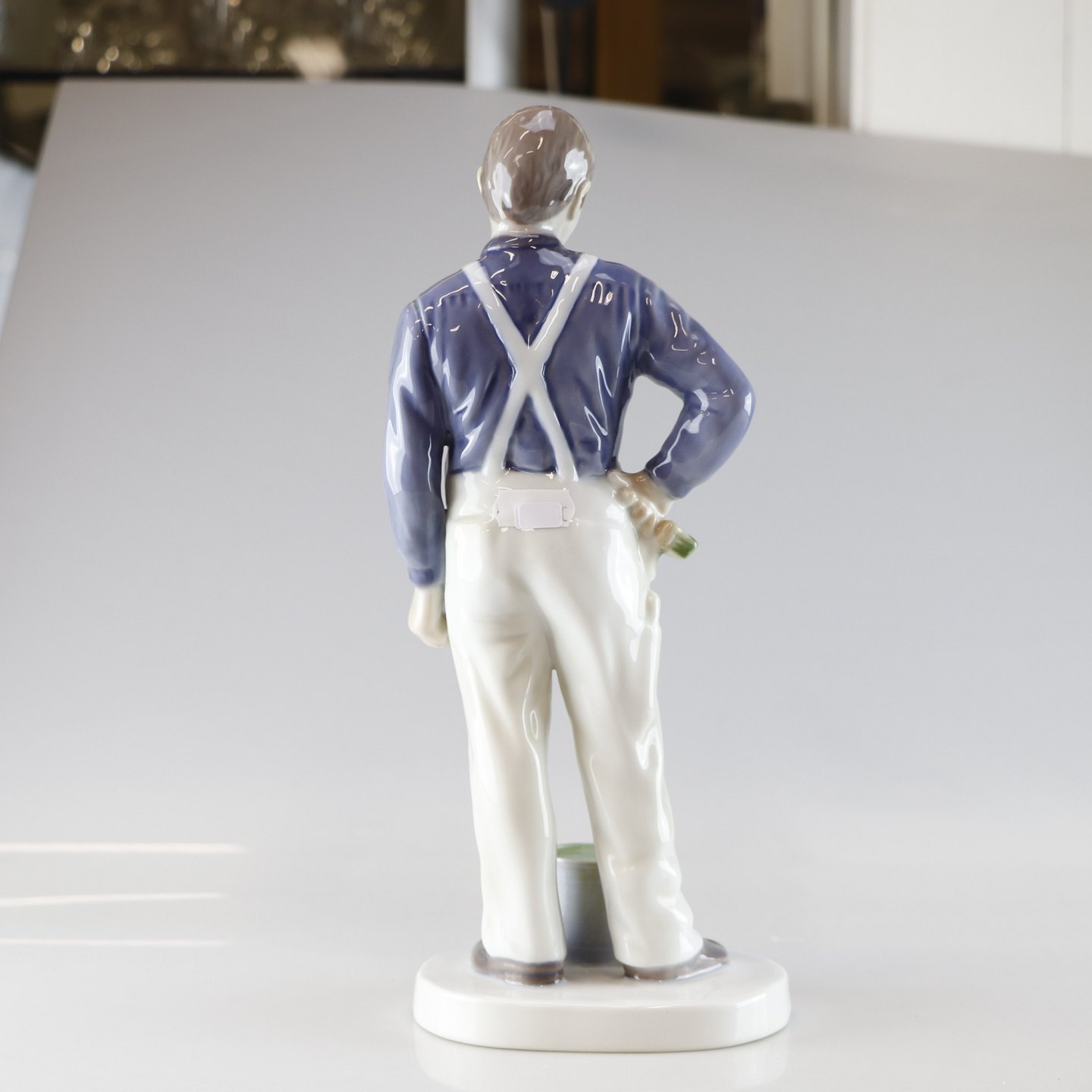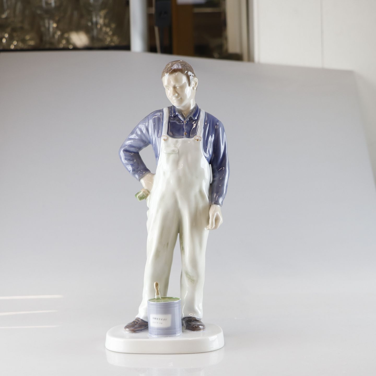 Figur i porcelæn nr. 2431 med motiv af maleren. Hvide bukser og blå skjorte.
