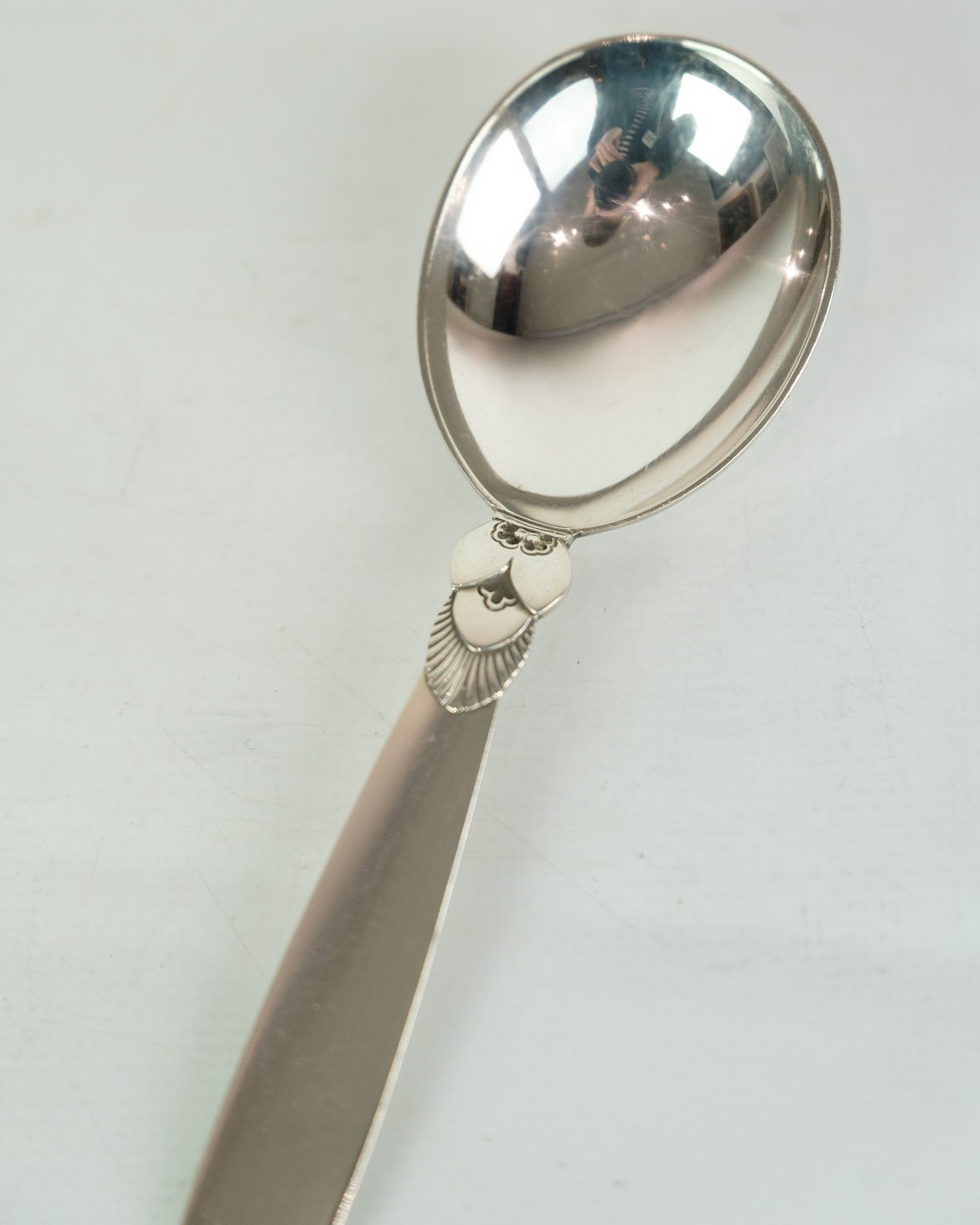 Denne Georg Jensen Kaktus marmeladeske i sterlingsølv er en smuk og praktisk tilføjelse til dit spisebord. Med et kendt Kaktusmønster designet af Gundorph Albertus i 1930 for Georg Jensen Sølvsmedie, Danmark, udstråler denne ske tradition, kvalitet og elegance. Selvom den er i en pæn brugt stand med almindelige brugsspor, vil den stadig tilføje charme til din morgenmad eller brunch. Bestil denne unikke og smukke sølvbestik i dag.