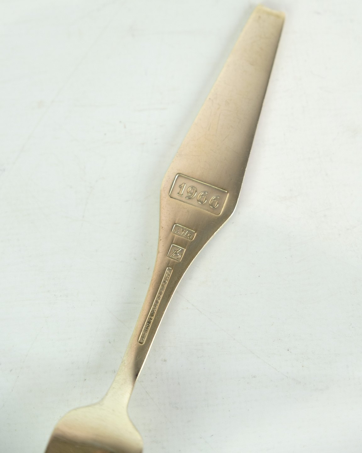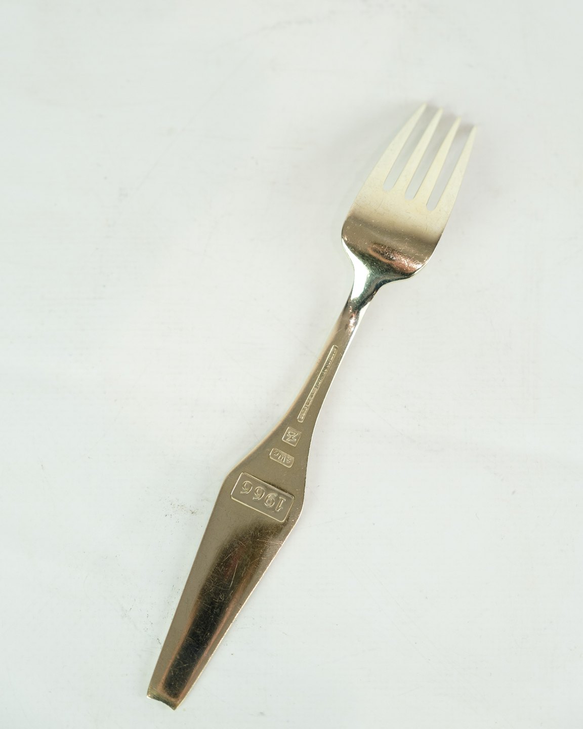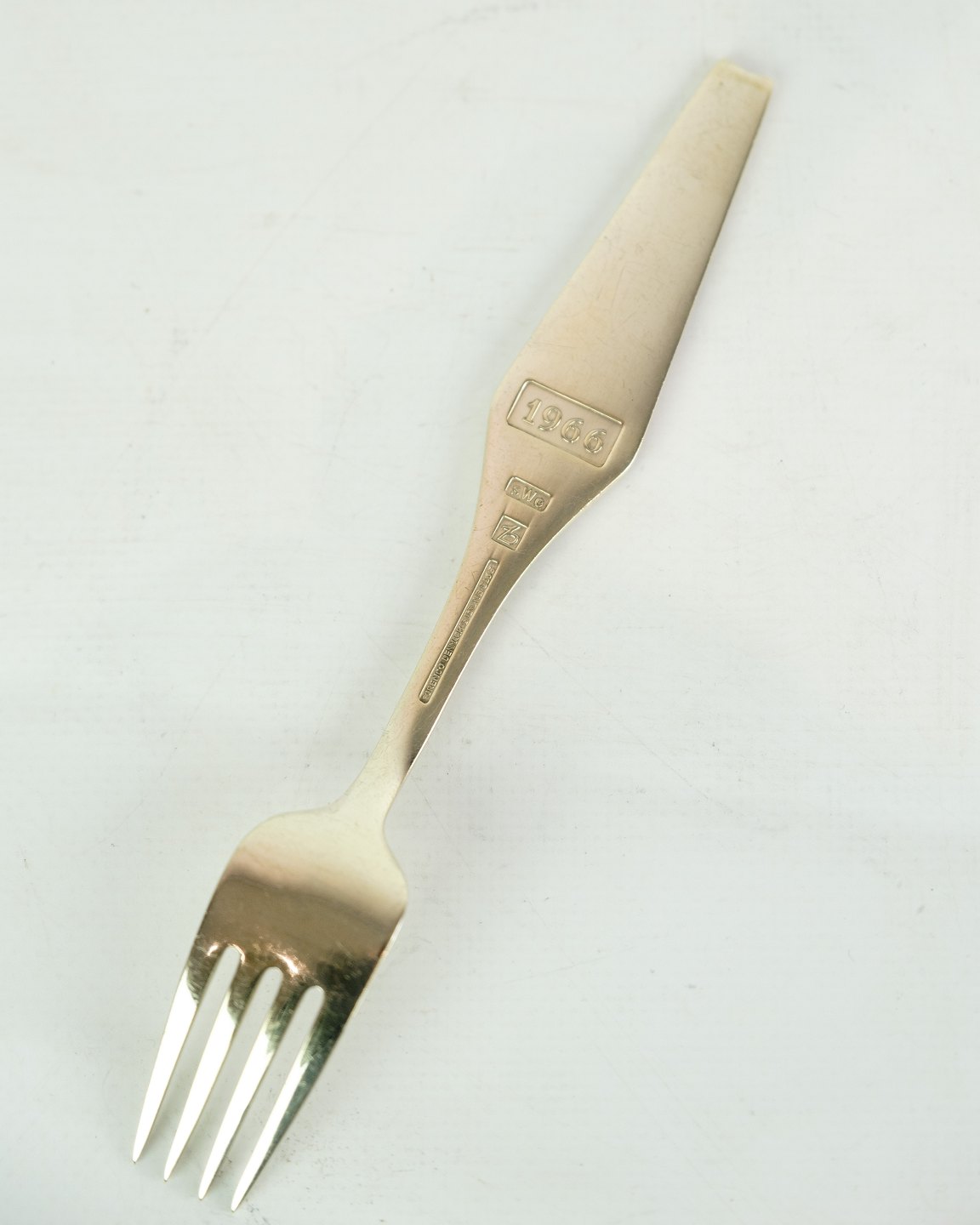 Denne smukke julegaffel fra Anton Michelsen er fra 1966 og bærer titlen "Flugten til Ægypten". Gaffelen er fremstillet i forgyldt sølv og har en smuk emaljedekoration, som er designet af Jørgen Dahlerup. Gaffelen er et værdifuldt samlerobjekt og vil være et smukt highlight på ethvert juletræ. Brug denne unikke gaffel til at spise dine yndlingsjulekager og nyd det fine design og den høje kvalitet, der kendetegner Anton Michelsen.