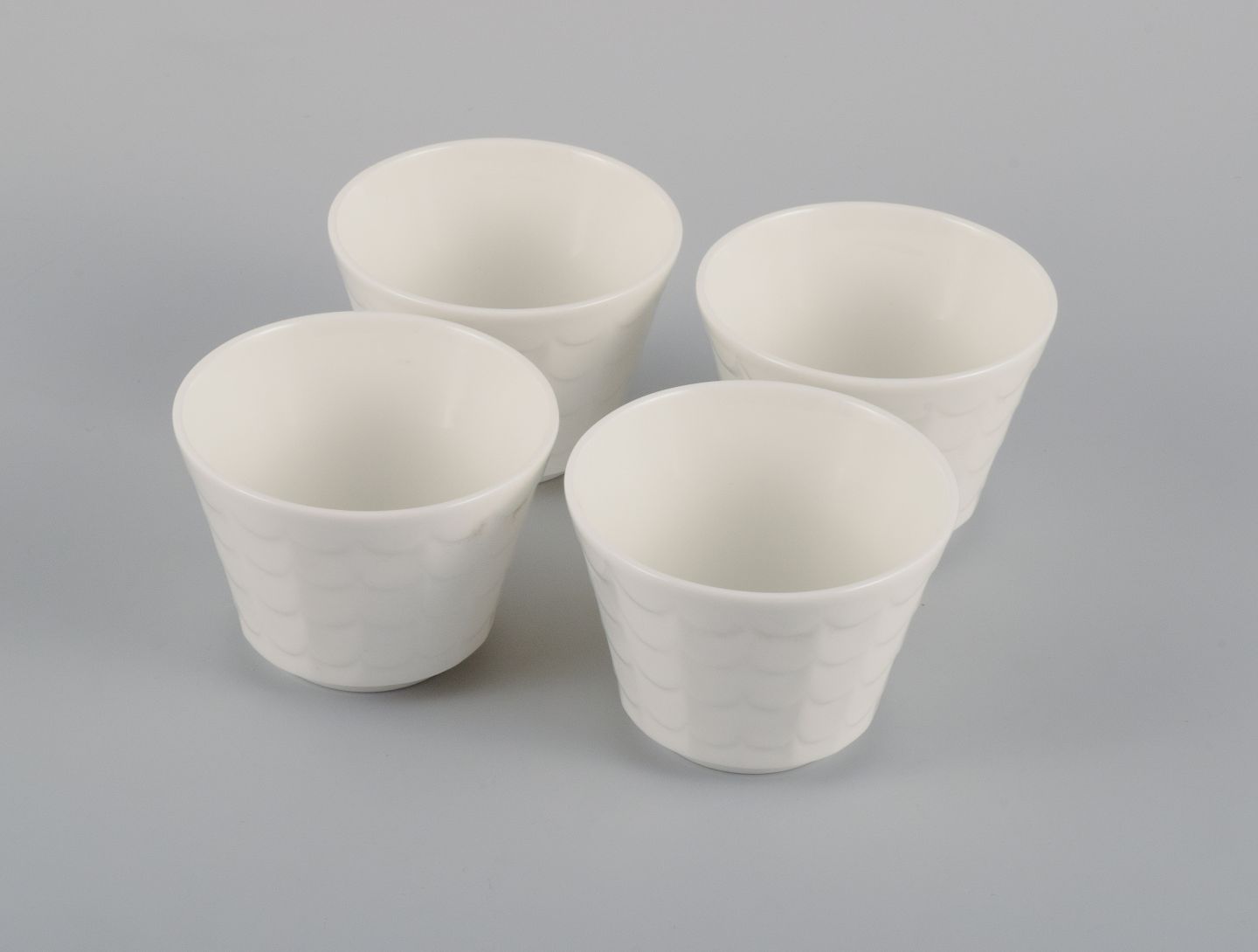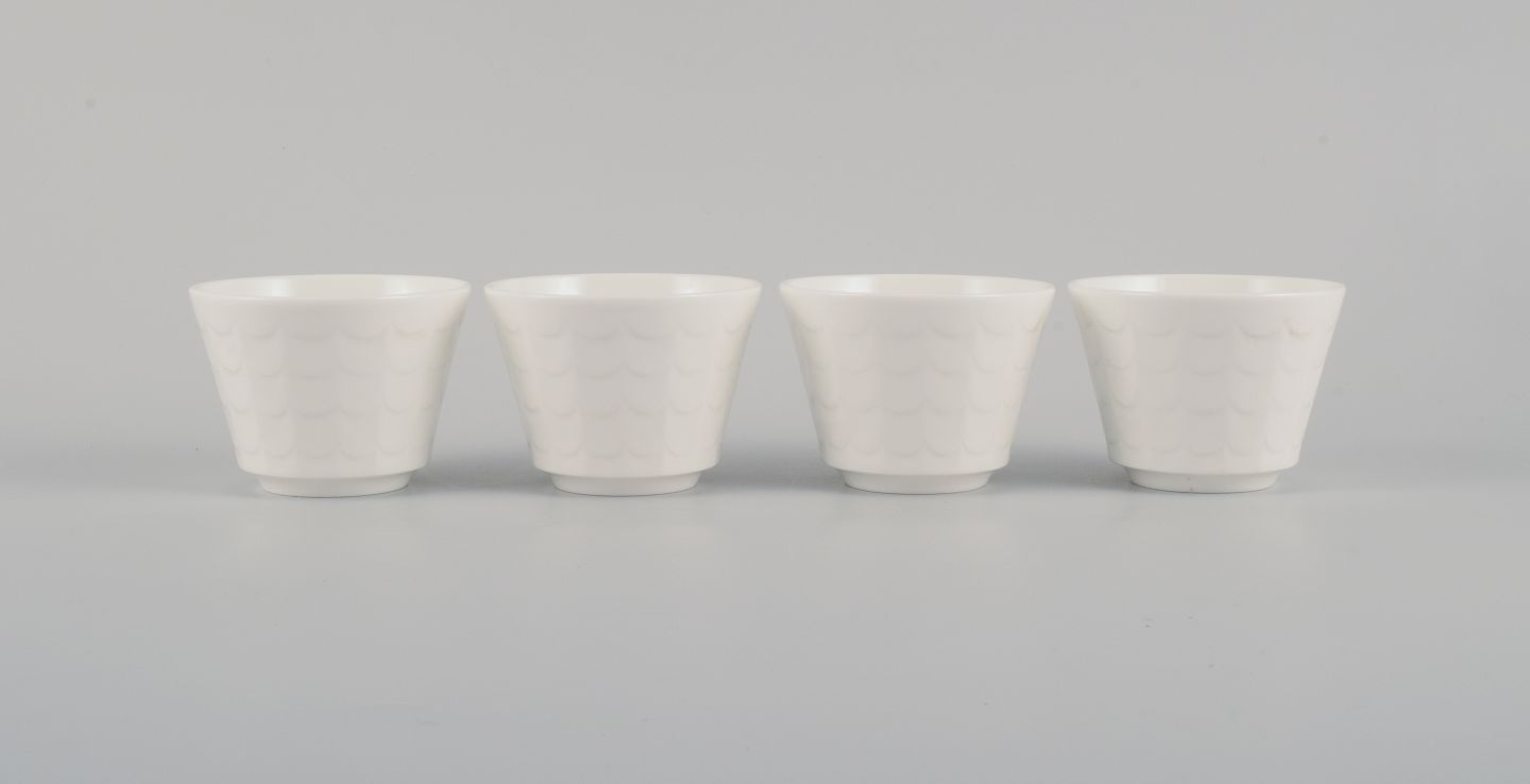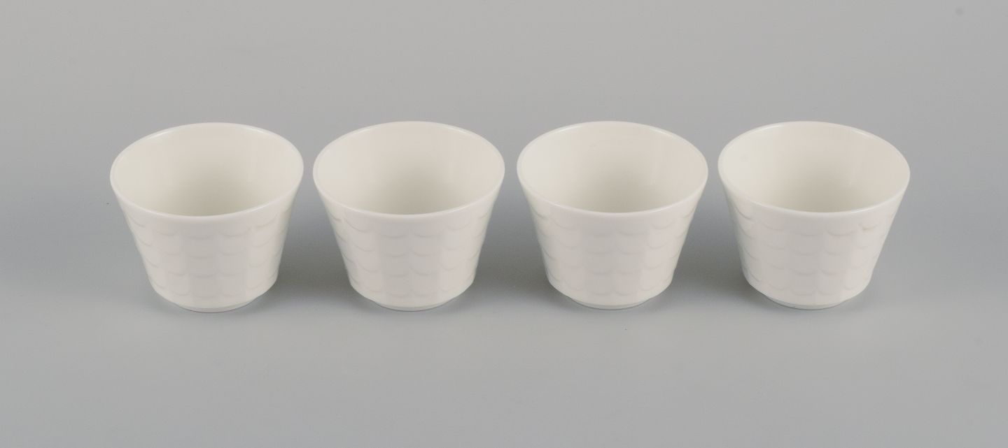 Wilhelm Kåge for Gustavsberg. Four flower pot covers in porcelain. Swedish design, 1960s.