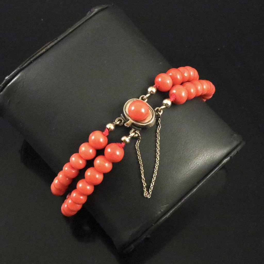Dobbelt-radet koral armbånd med forgyldt lås.