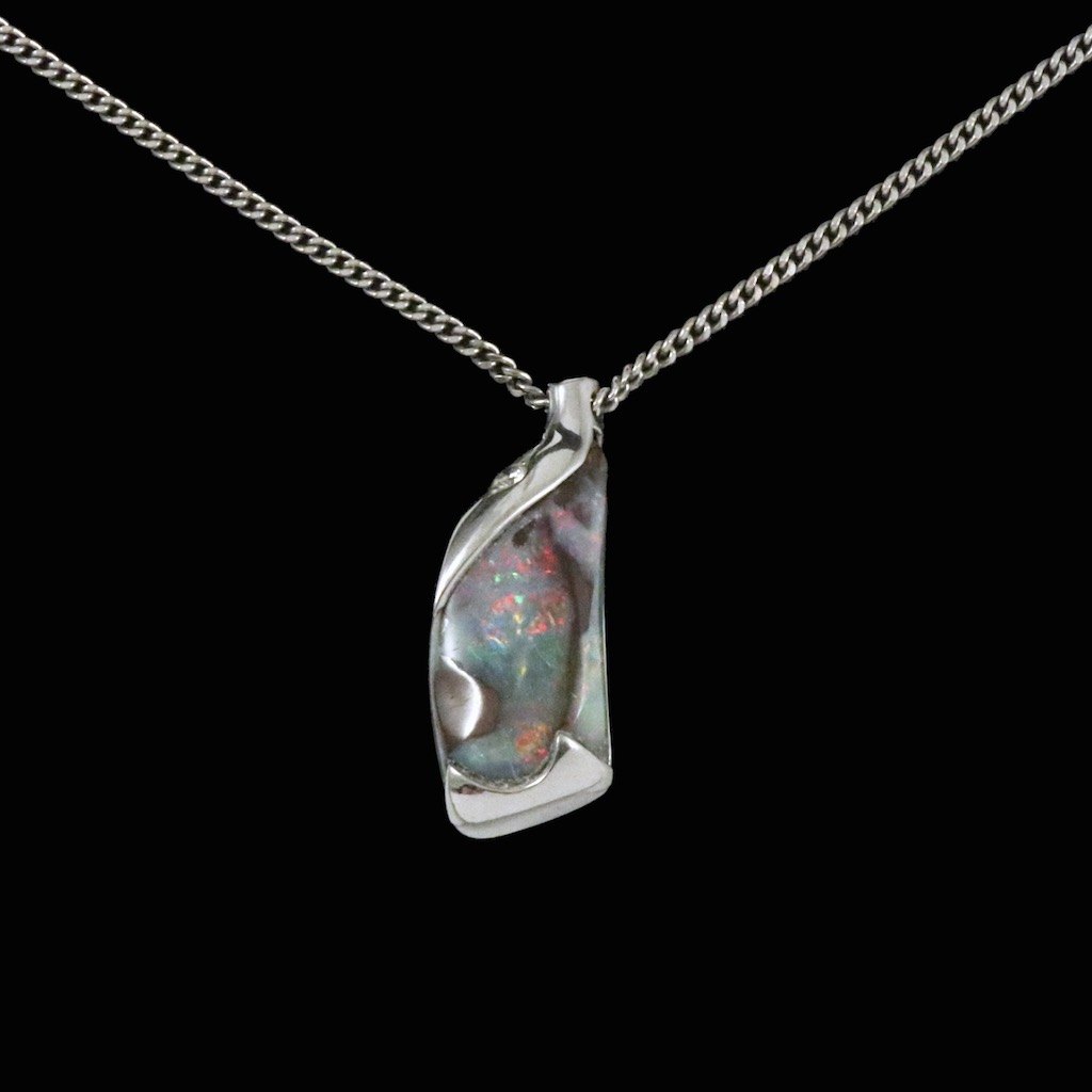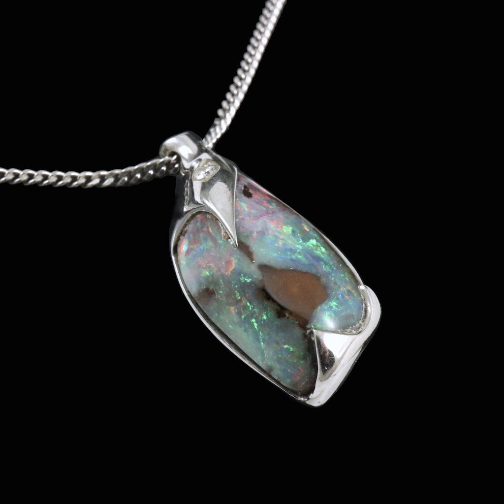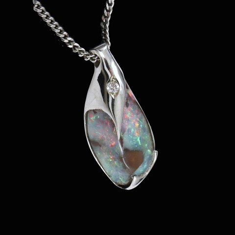 Georg Jensen. Unika vedhæng 18k hvidguld med opal og brillant.