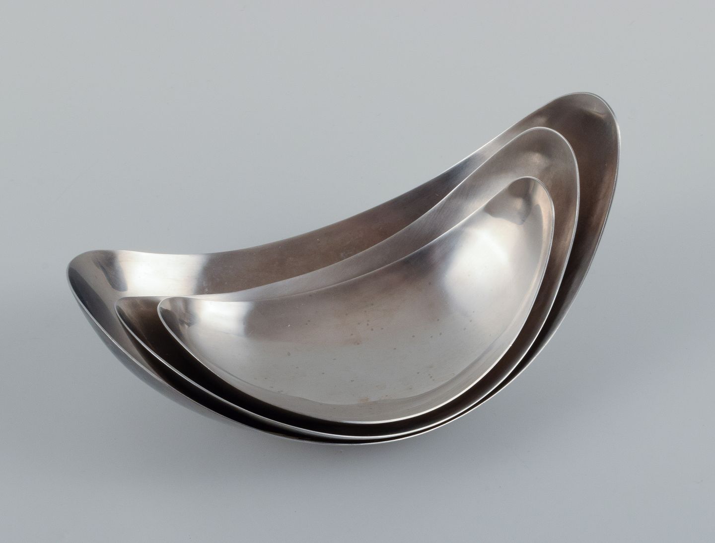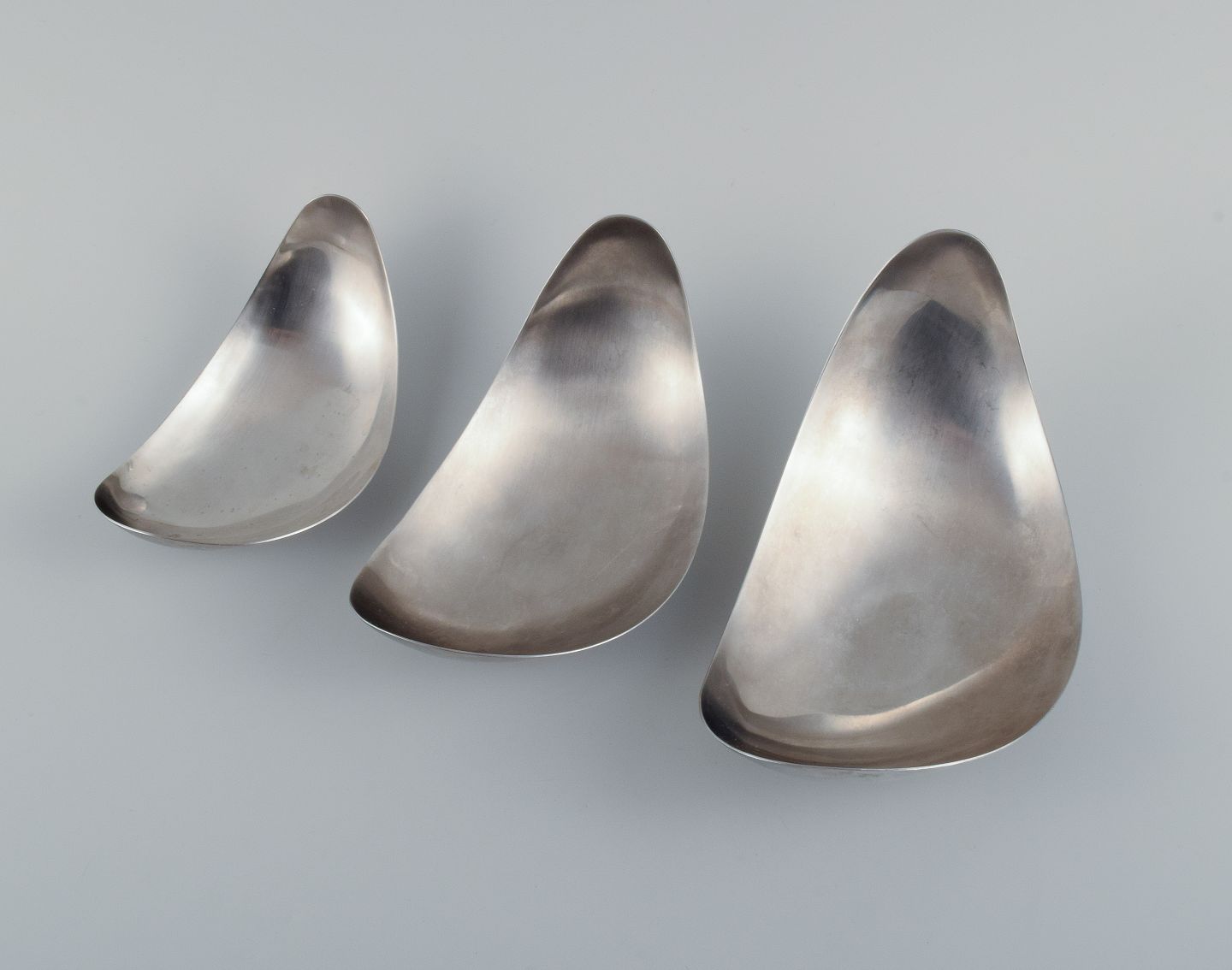 Sæt på tre Georg Jensen "Leaf" skåle i rustfrit stål.