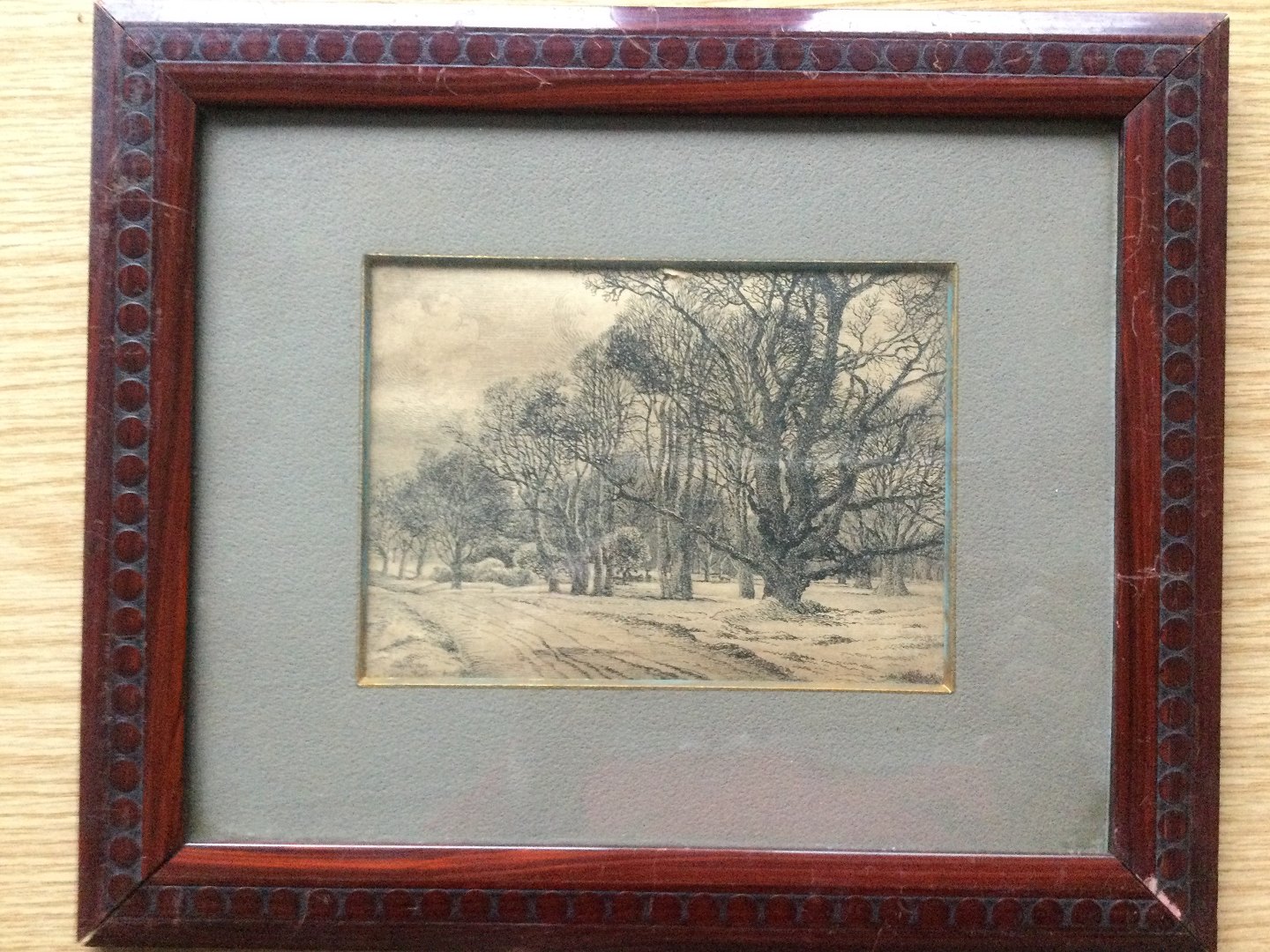 Radering fra DDRF af Vilhelm Kyhn - Skoven ved vinter 1866.
