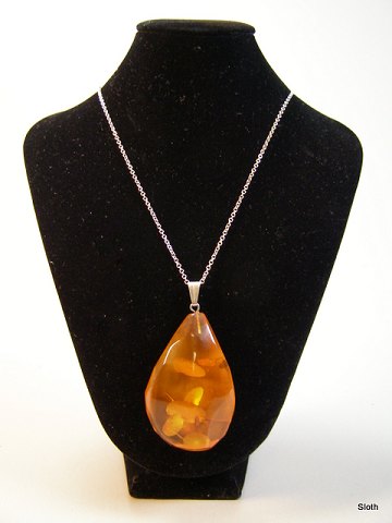 830 Sølvkæde med stort Ravsmykke L: 7 cm. B: 4,5 cm. EF