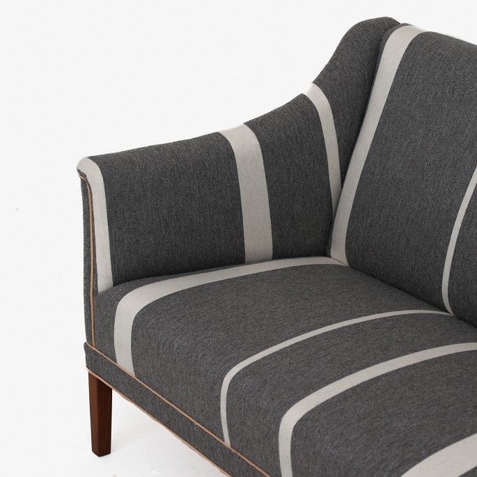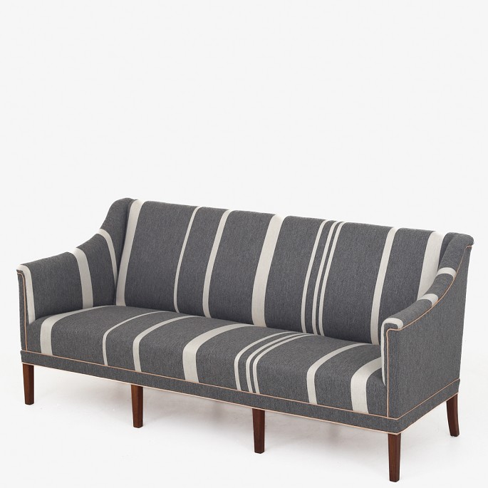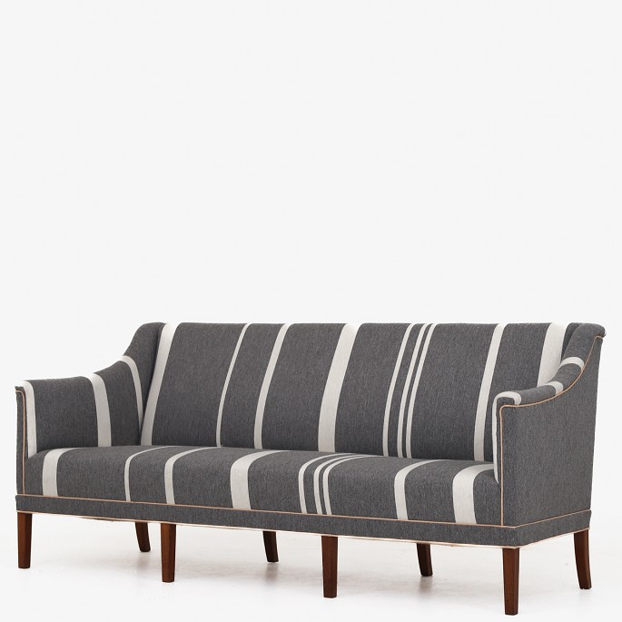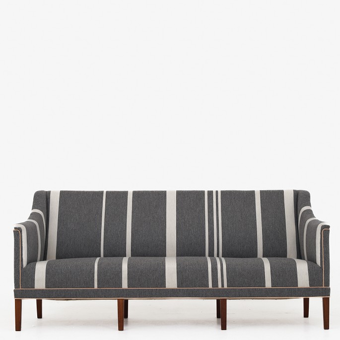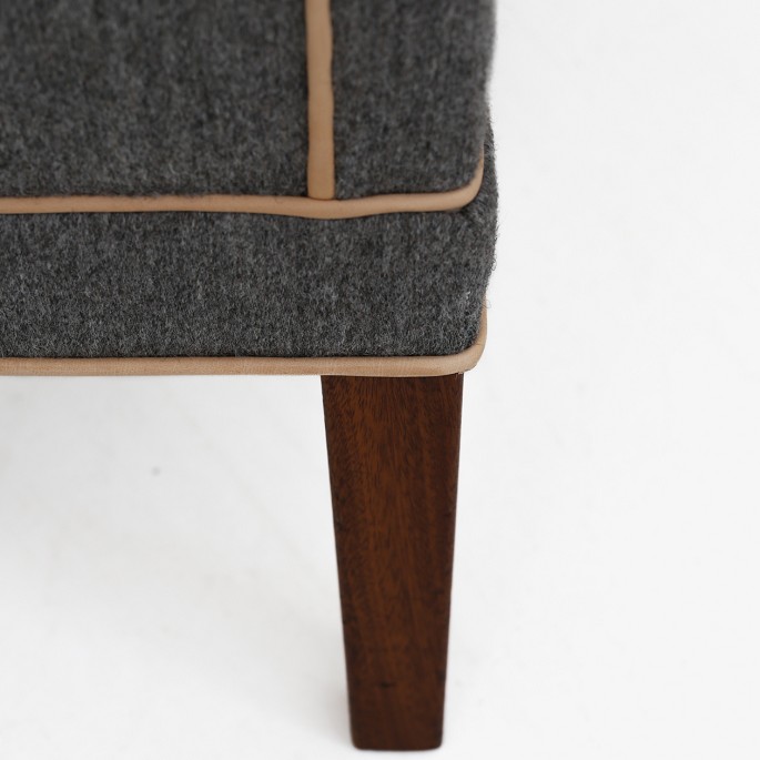 Model KK 6090 - Nybetrukket 3 pers. sofa i Savak-uld (farve: 41240) med kedere i naturlæder. Ben af mahogni.