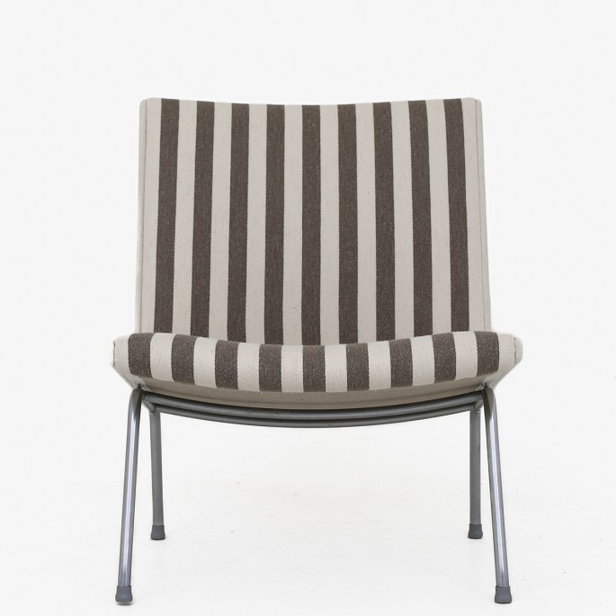 AP 39 - Lufthavnsstol, lænestol i nyt tekstil ('Halk' fra Kjellerup Væveri, farve: 02-260) på stel af stål.