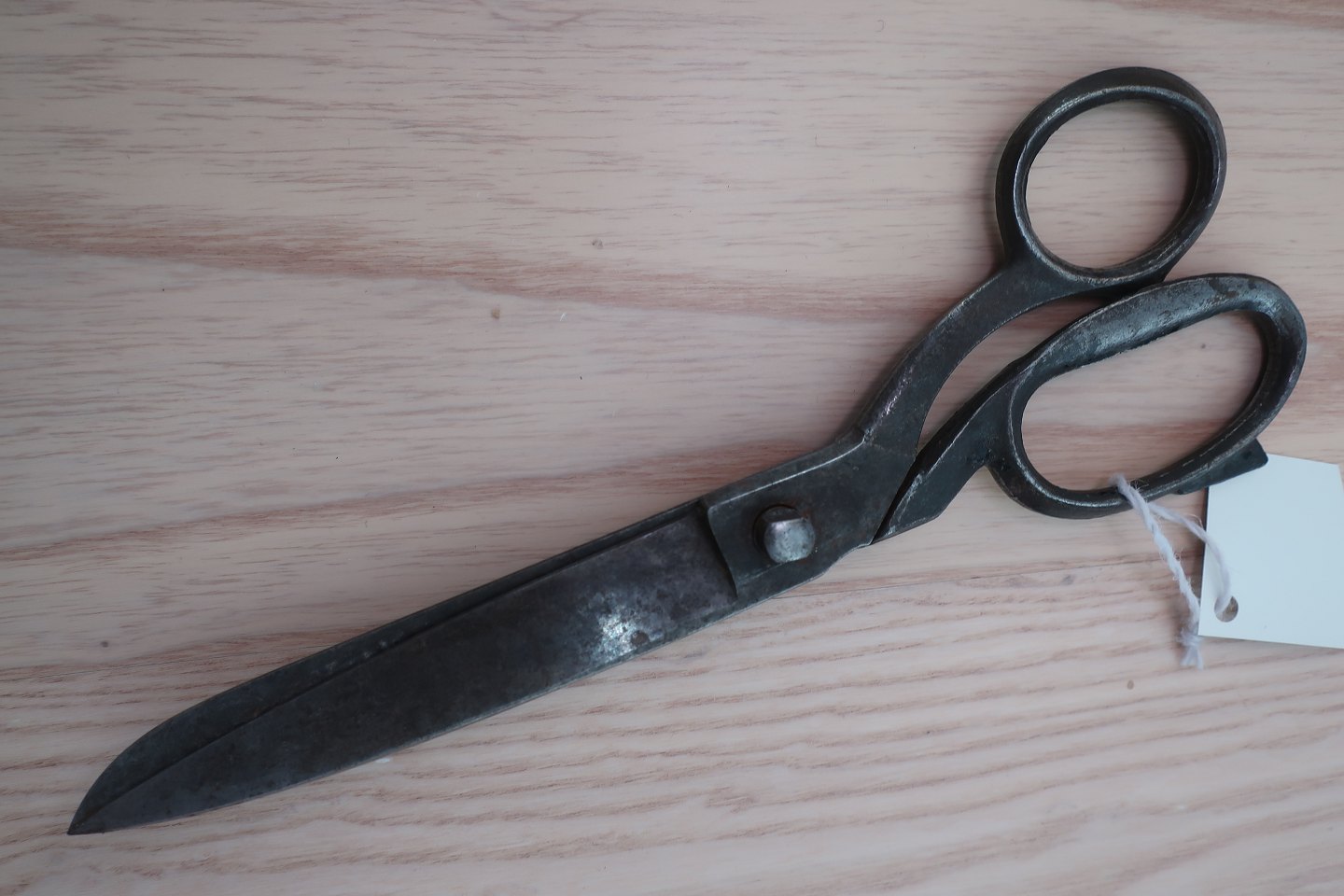 Stor gammel håndsmedet saks, - den kan slibes, hvis den bliver sløv