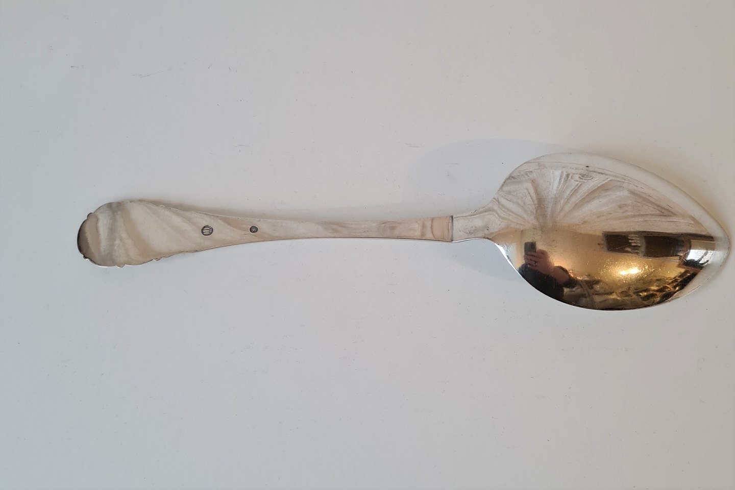 Stor serveringsske i sølv fra 1933 - 25,5 cm.