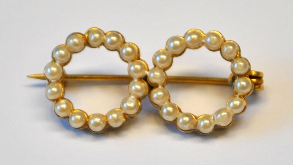 Antik forgyldt brosche med 28 ægte perler, 19. årh