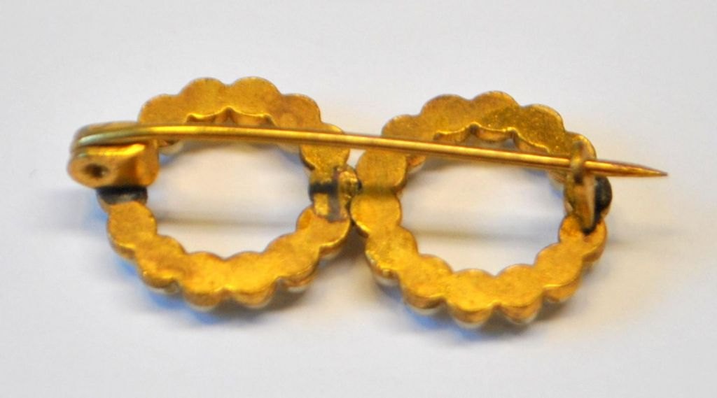 Antik forgyldt brosche med 28 ægte perler, 19. årh. 2,6 x 1,3 cm.