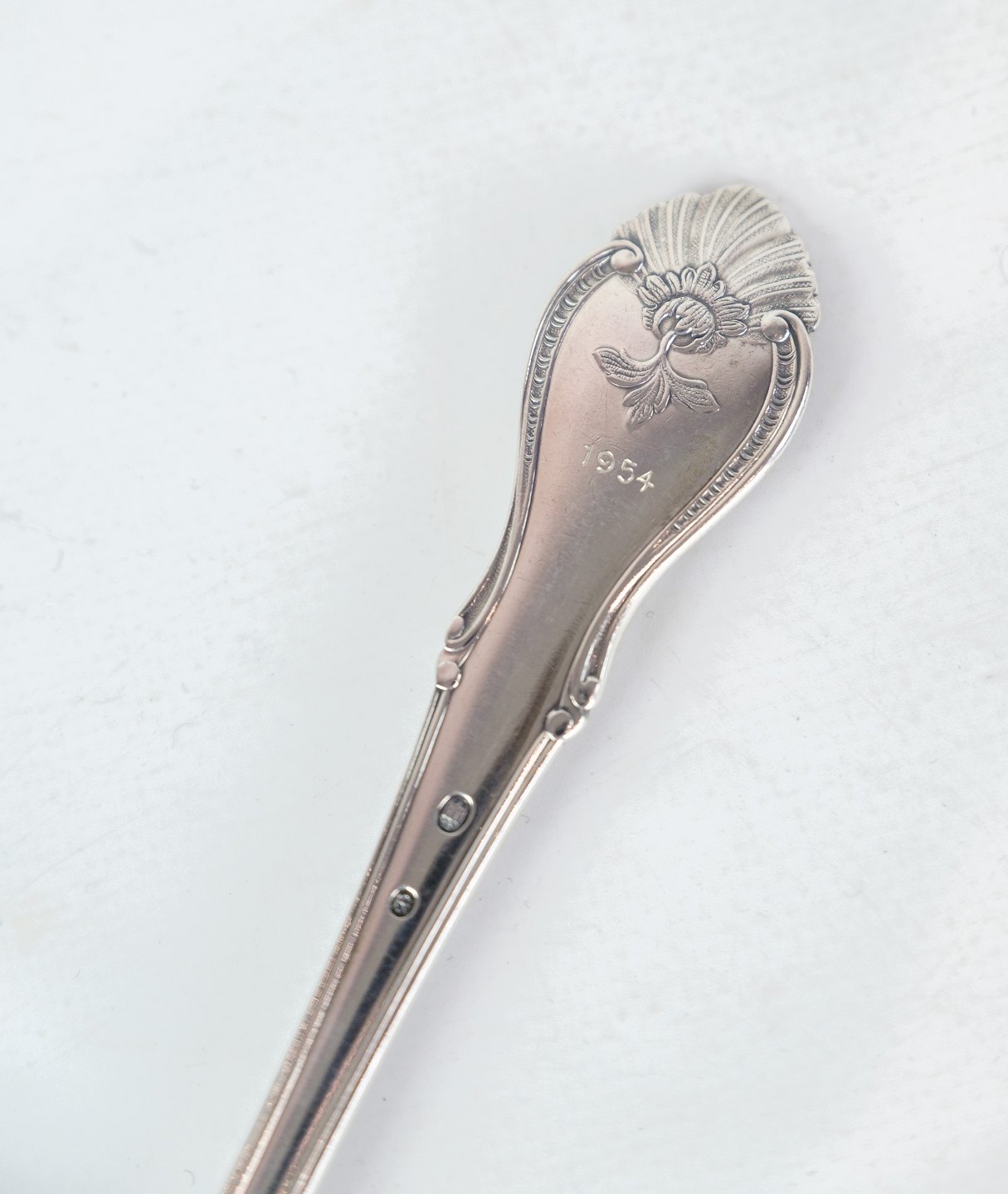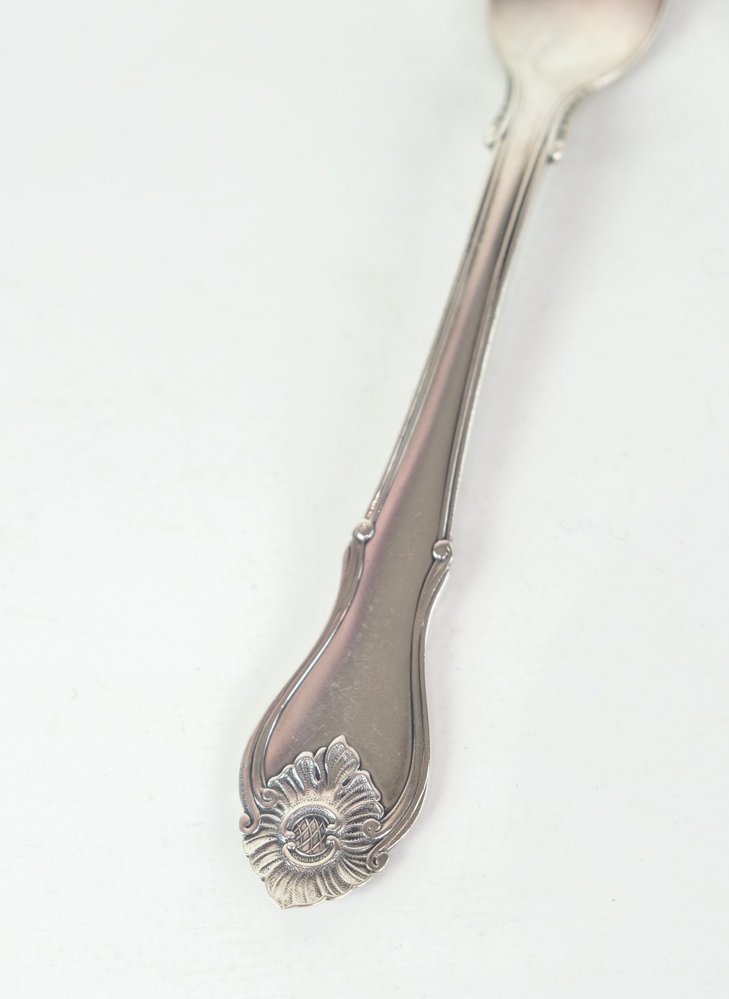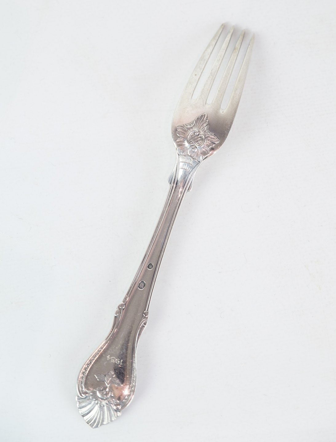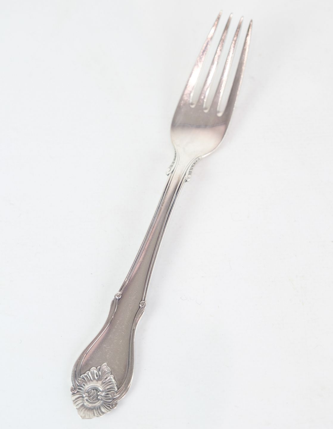 Lunch fork in rococo of Danish silver cutlery in the triple tower 830s, made at Horsens silverware factory.