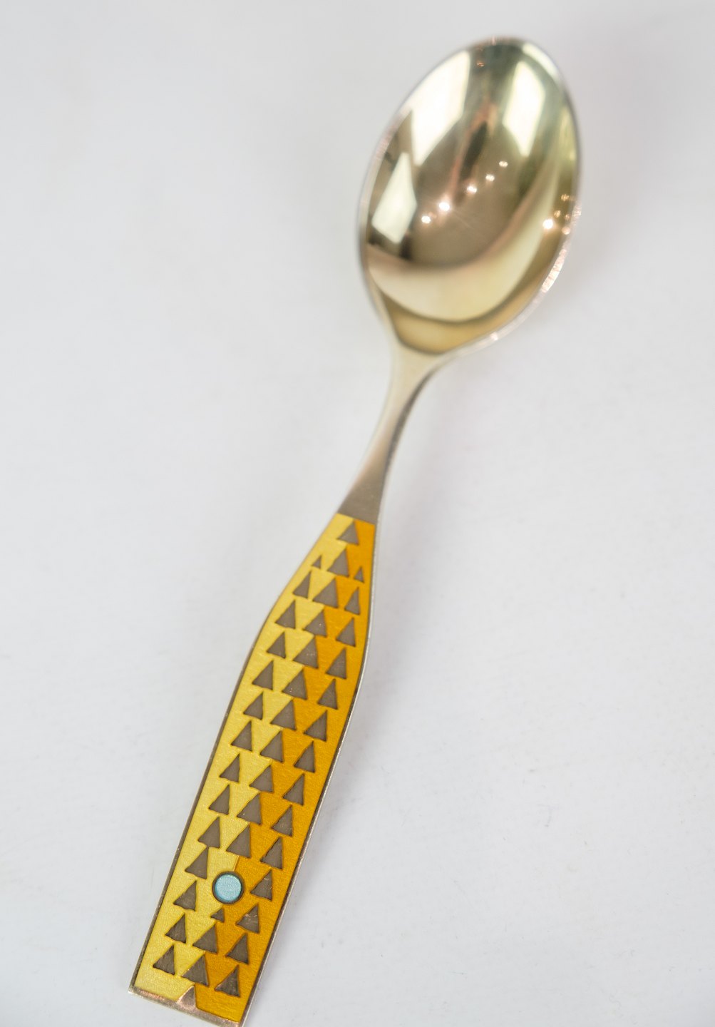 Anton Michelsen julegaffel i forgyldt sølv med motiv af Vintersolhverv af kunstneren Rolf Middelboe i år 1960. Gaflen står i meget fin stand.
