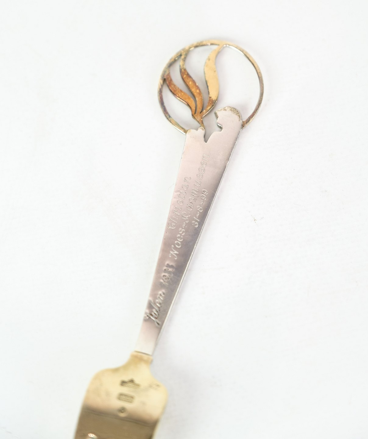 Anton Michelsen Juleske fra 1933 i delvis forgyldt sterling sølv er et smukt og eksklusivt stykke sølvtøj, der vil være en værdifuld tilføjelse til din julebordssamling. Skeen er lavet af høj kvalitet sterling sølv og er delvist forgyldt, som giver den en glansfuld finish. Motivet på skeen er den lille pige med svovlstikkerne, som er kunstnerisk fremstillet af c. Skeen er i pæn stand og har et elegante design med fine detaljer, der vil gøre denne juleske til en dekorativ og funktionel tilføjelse til din julefejring.